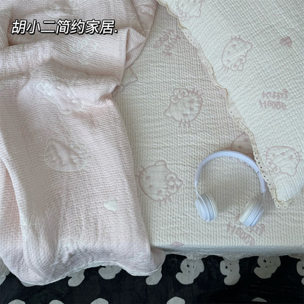 卡通可爱猫咪夏季凉感天丝纱布夏凉被空调被可机洗薄被子纱布盖毯