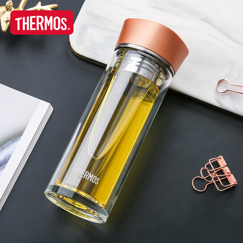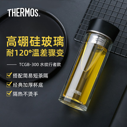 膳魔师耐热玻璃杯双层透明隔热随行便携带茶滤泡茶杯水杯TCGB-300