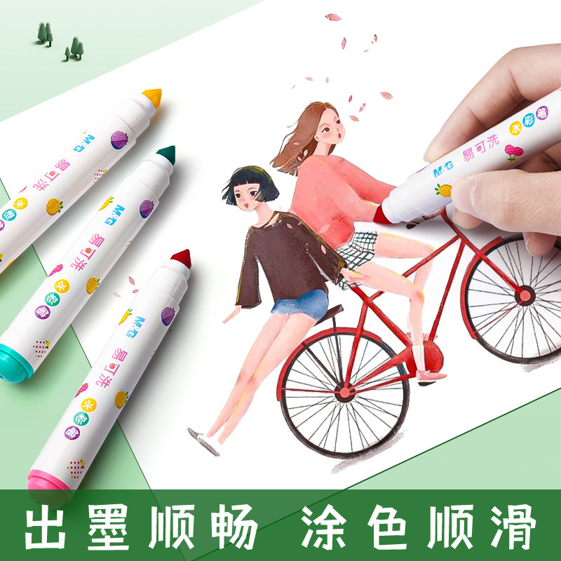 晨光易可洗水彩笔儿童可水洗彩色笔24色36色桶装画画笔彩笔套装幼儿园小学生专用不透色颜色笔