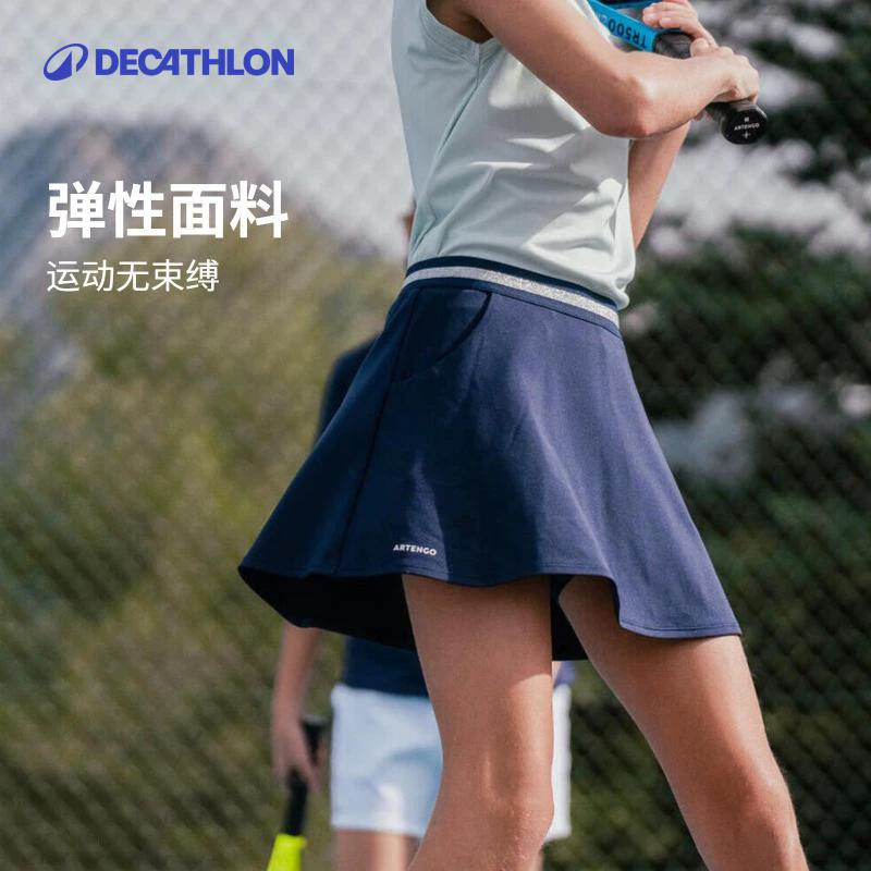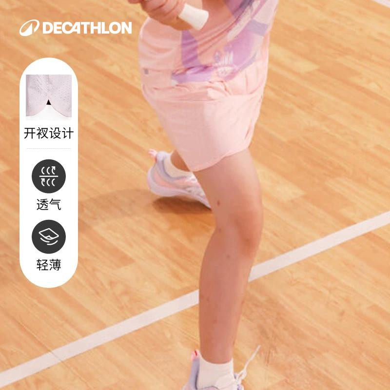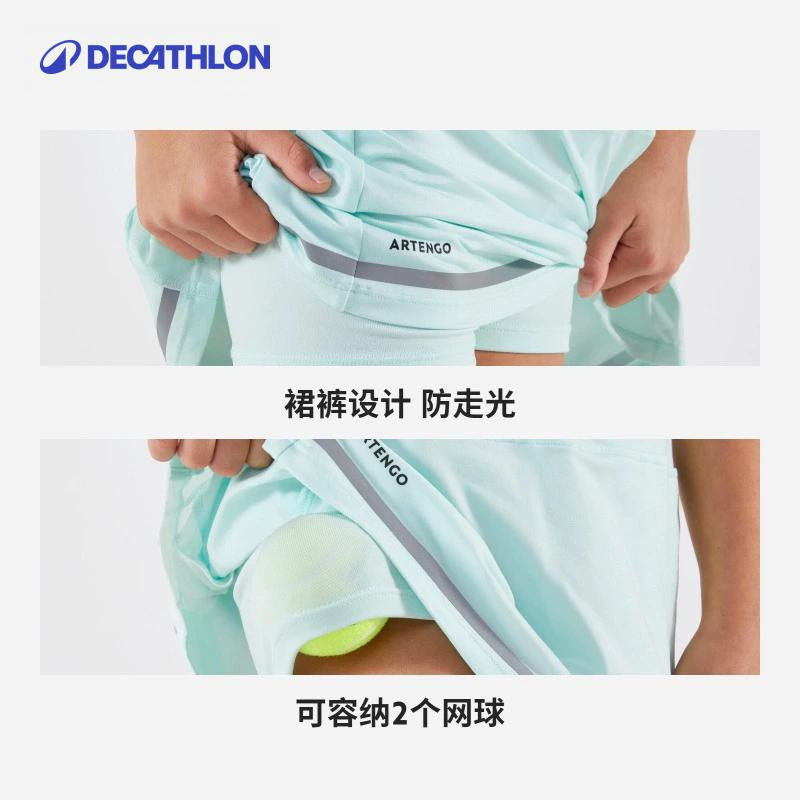 迪卡侬女童百褶裙半身裙春夏白色儿童网球裙运动裙裤速干短裙KIDO