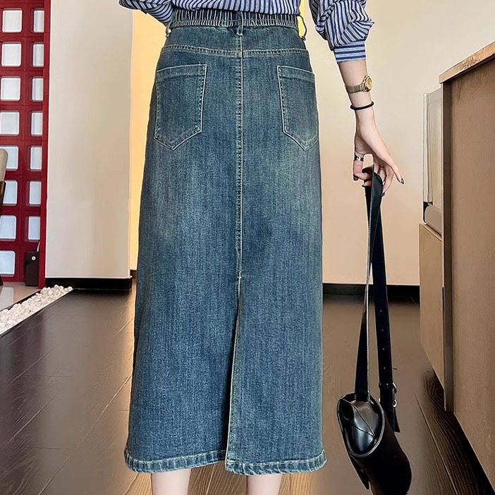 特大码高腰牛仔半身裙女200斤秋季胖mm300显瘦中长款开叉A字裙子