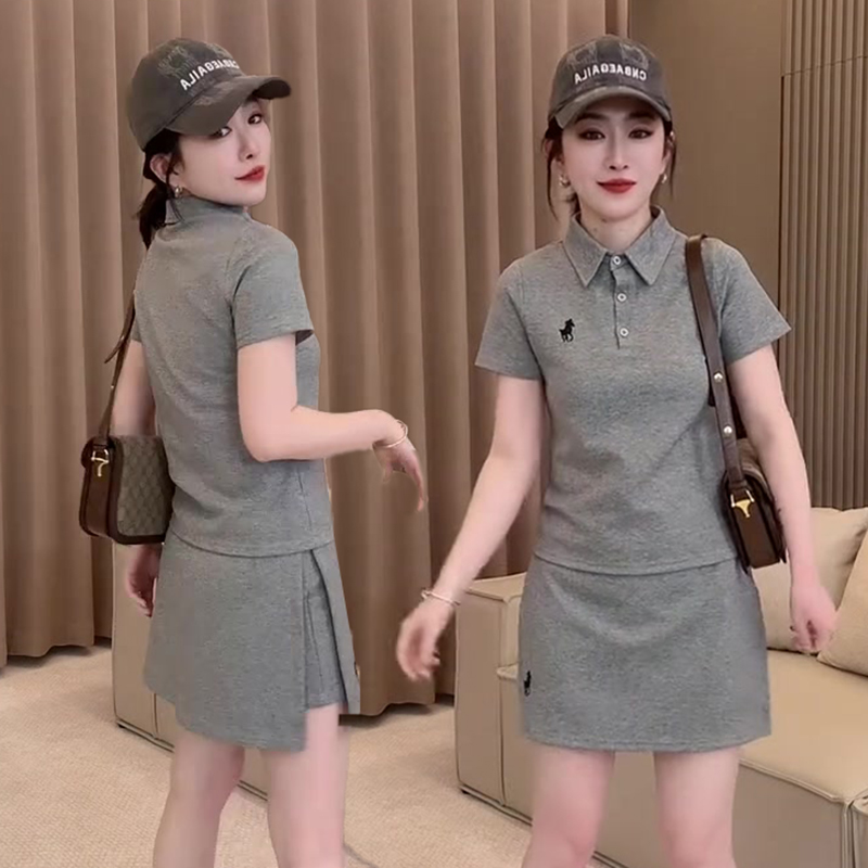 商务休闲运动套装女2025夏季新款简约显瘦高尔夫短袖polo衫短裤裙