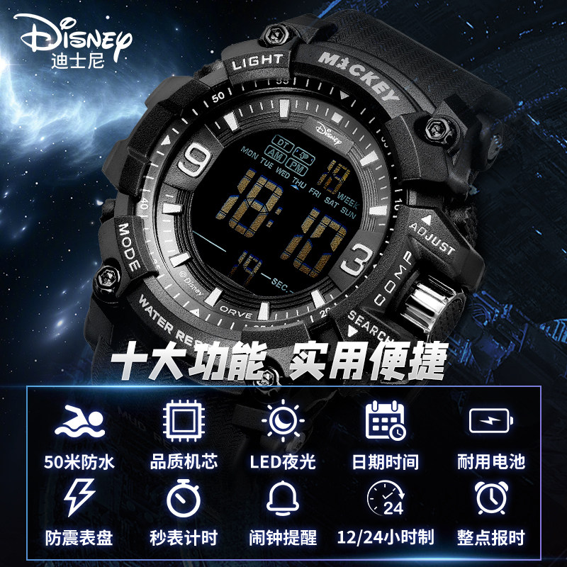迪士尼手表男款学生初中高中生小学生男孩生日礼物运动防水电子表