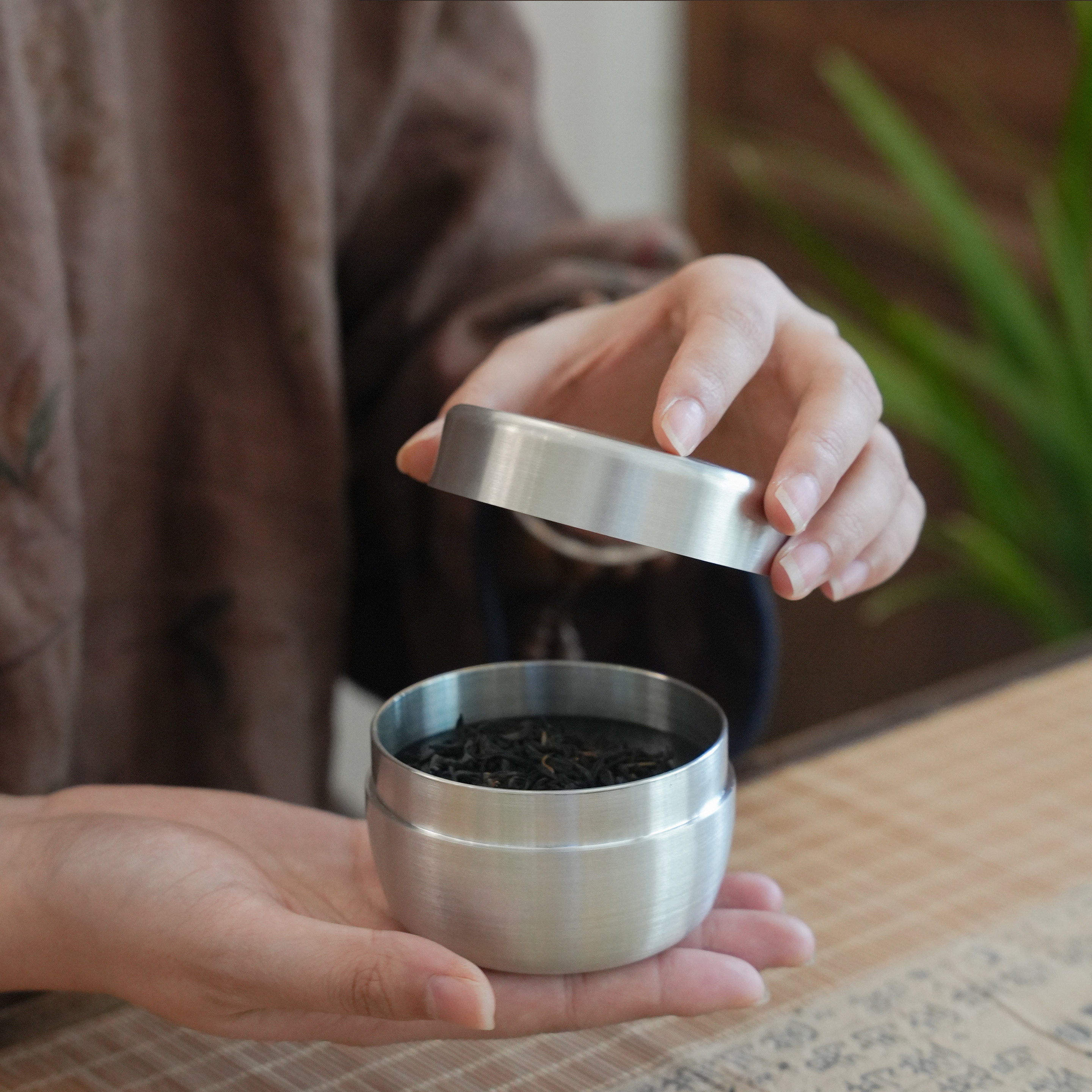 秦藏阁 圆融小锡罐手工茶叶罐迷你便携密封防潮香盒印泥盒无铅锡