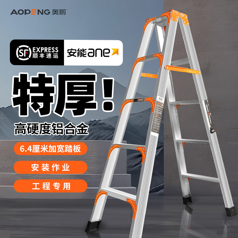 奥鹏特厚铝梯合梯人字梯子铝合金加粗加厚家用折叠楼梯子工程专用