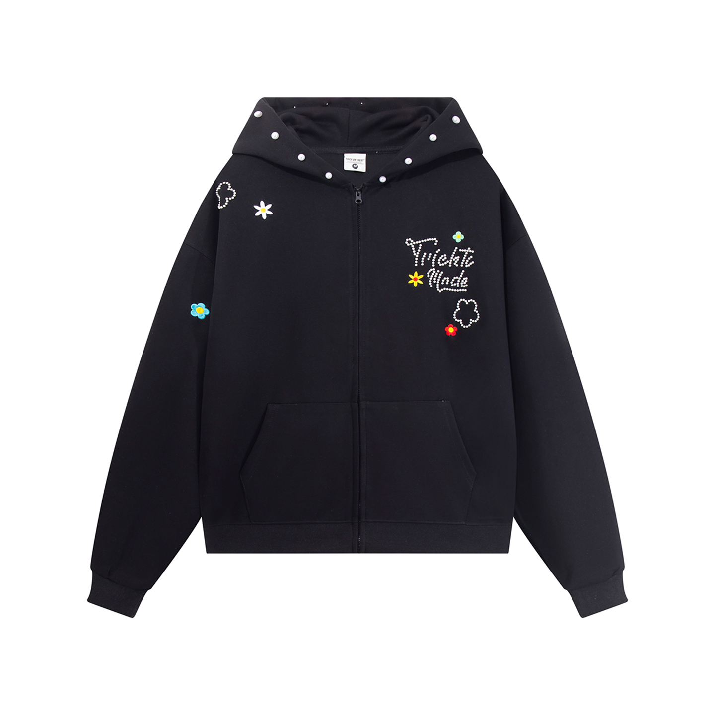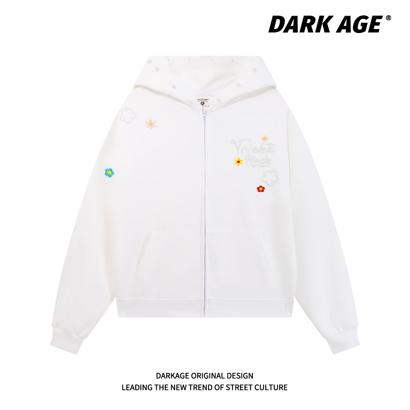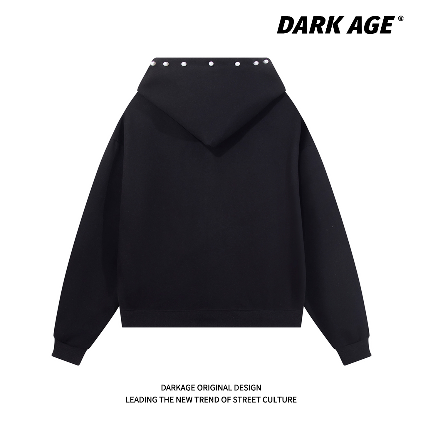 DARKAGE美式复古秋冬钉珠字母连帽卫衣男女慵懒风情侣款重磅上衣