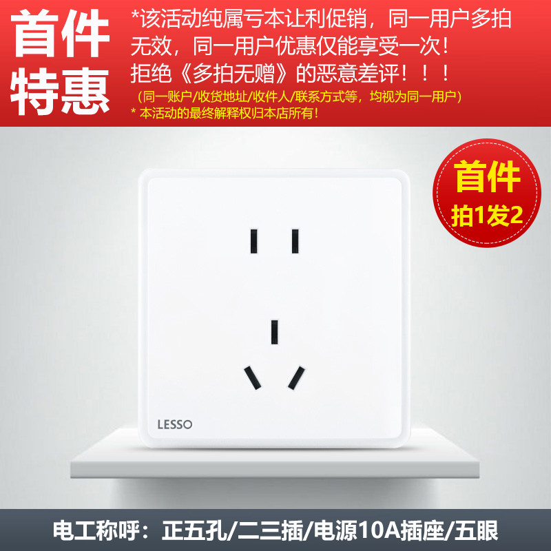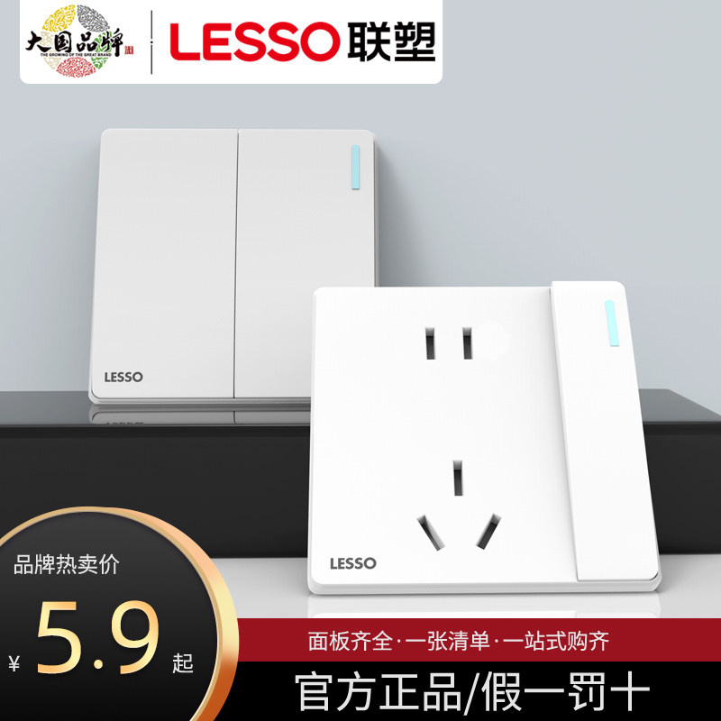 联塑86型墙壁带开关插座暗装10A16A白色大板面板家用五孔单控双控
