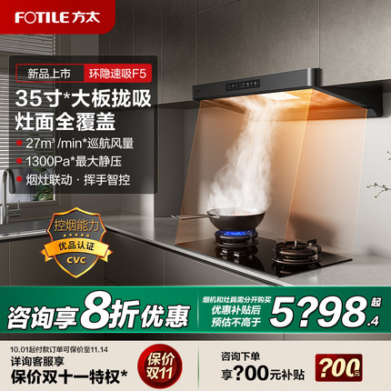 方太F5欧式抽吸油烟机燃气灶具套装烟机厨房家用大吸力官方旗舰店