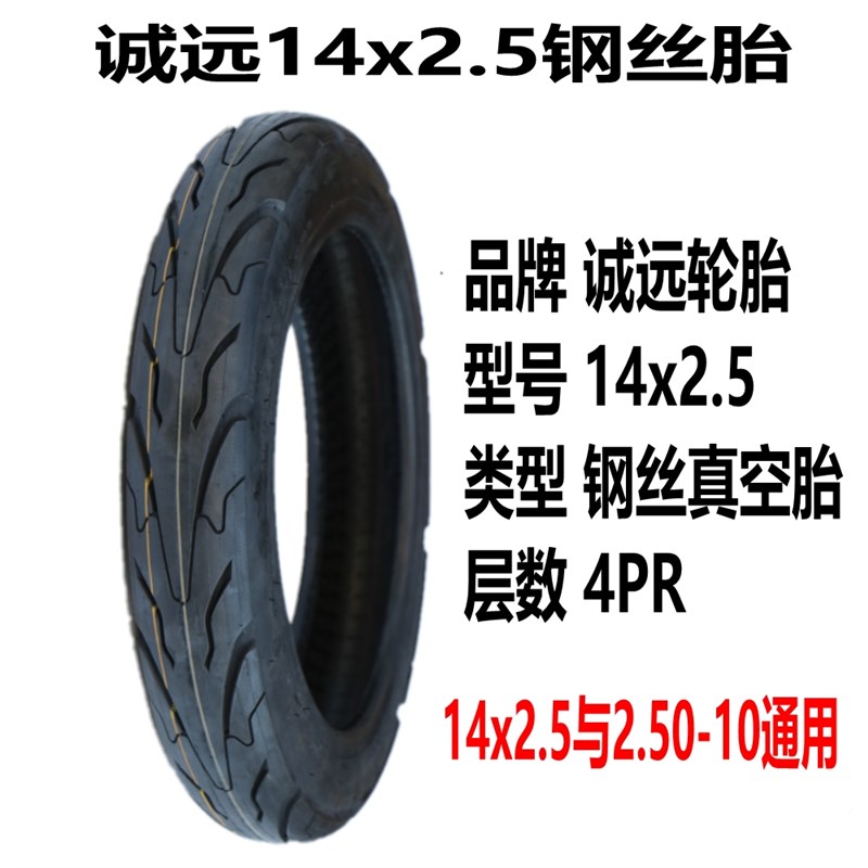 诚远14/16x2.50/2.75/3.00-10寸电动摩托车防爆刺钢丝真空外轮胎