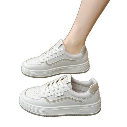 爆款小白鞋女2025春季新款平底女鞋系带时尚百搭厚底休闲运动板鞋