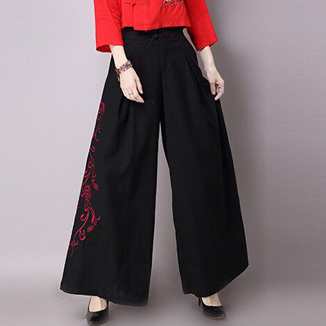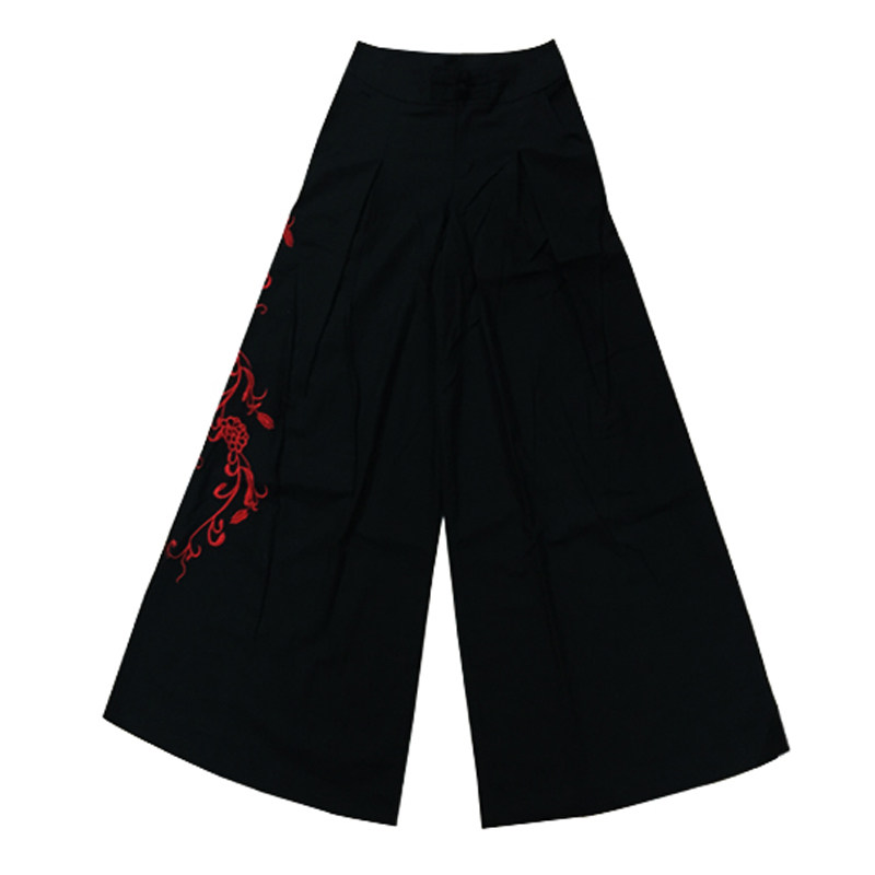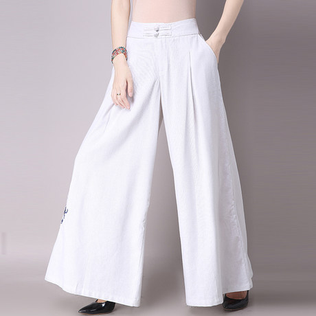 中国民族风复古 舞蹈表演服甩裤 特色青花瓷刺绣 简约棉麻 阔腿裤