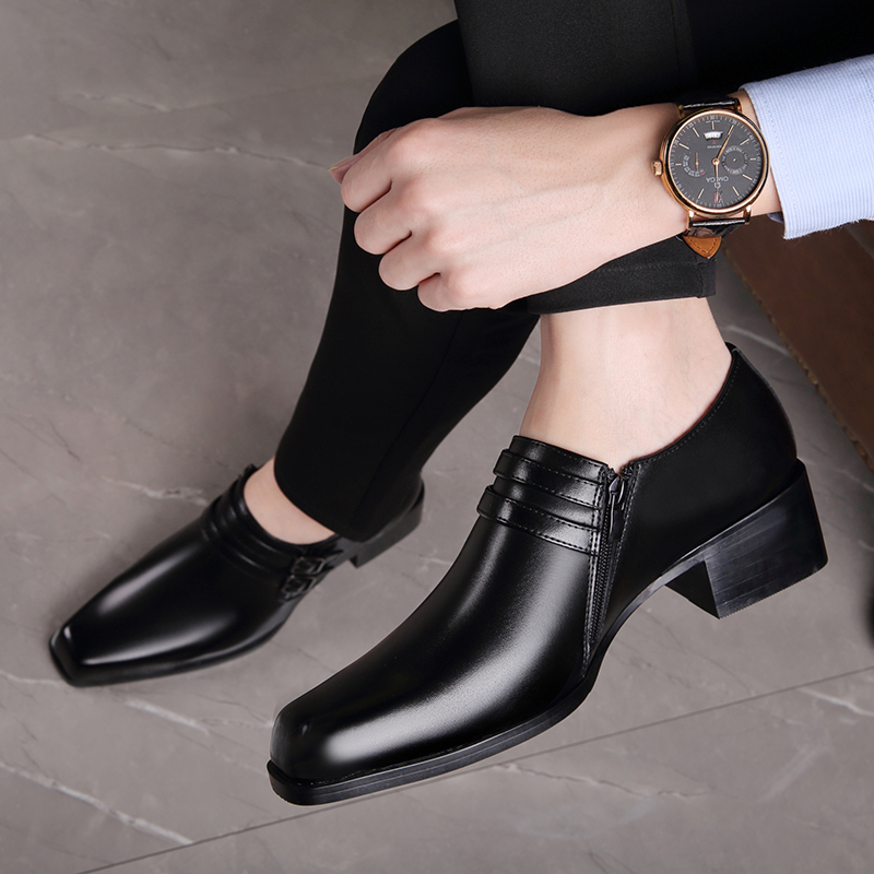 秋季正装皮鞋男牛皮韩版尖头商务休闲透气潮发型师真皮英伦工作鞋