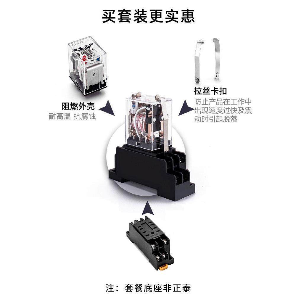 正泰中间继电器220V交流电磁小型继电器24V底座直流8脚14脚DC12V