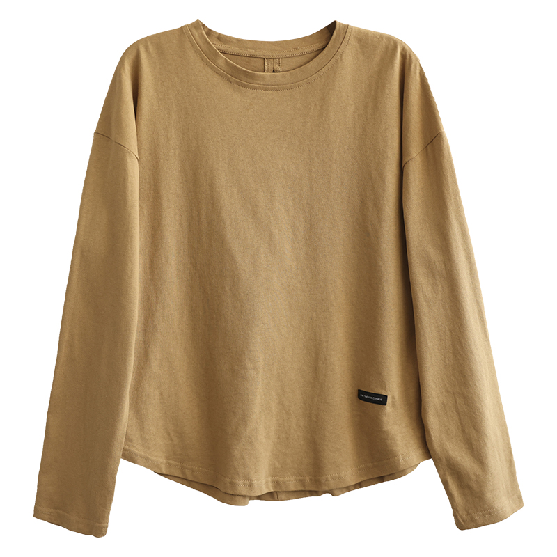 代勒早秋新款纯棉长袖t恤女士纯色通勤打底上衣文艺休闲薄款体恤