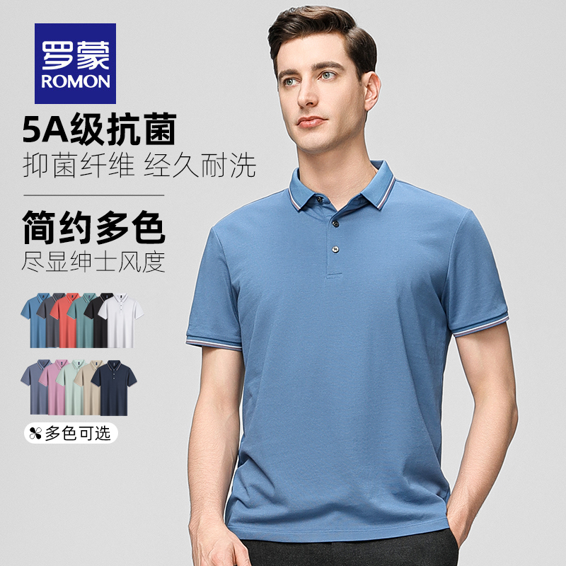 【5A抗菌+含桑蚕丝】罗蒙POLO衫男士冰丝凉感短袖2025夏季薄款T恤