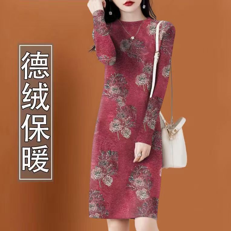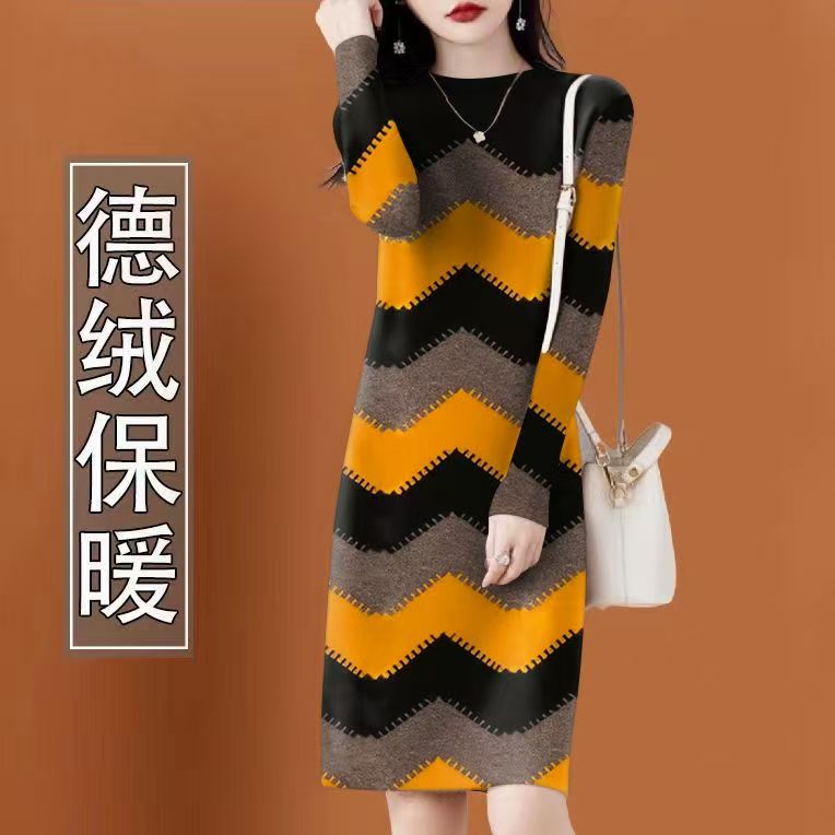 气质高档德绒女秋冬新款洋气连衣裙配大衣中长款内搭打底连衣裙