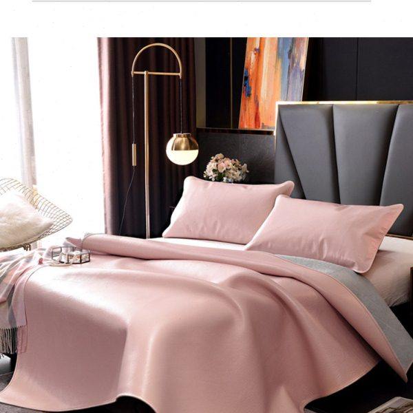 头层牛皮彩绘凉席三件套1.8席子双人床1.5折叠空调软席真皮