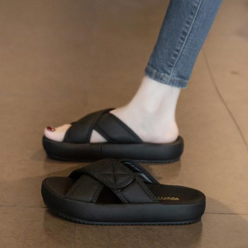 凉拖鞋女夏季外穿2024新款厚底超火仙女风沙滩凉鞋时尚孕妇一字拖