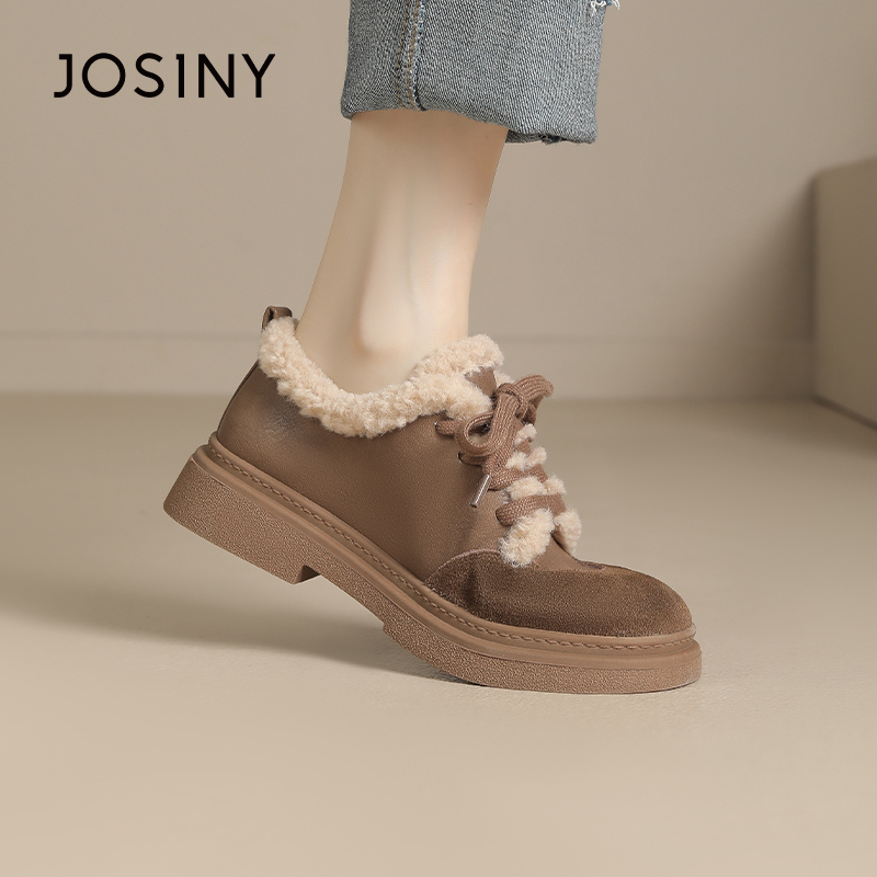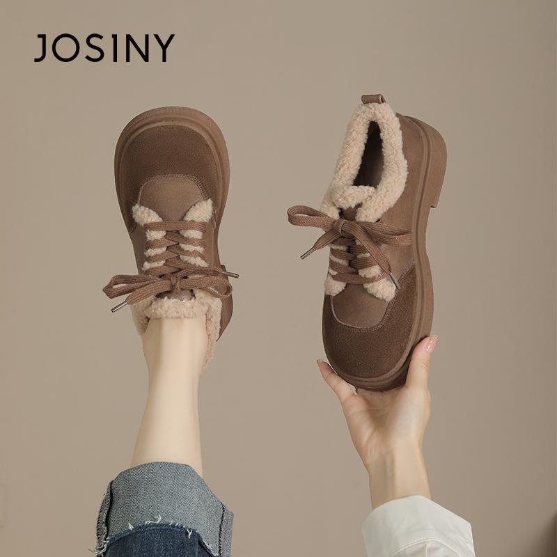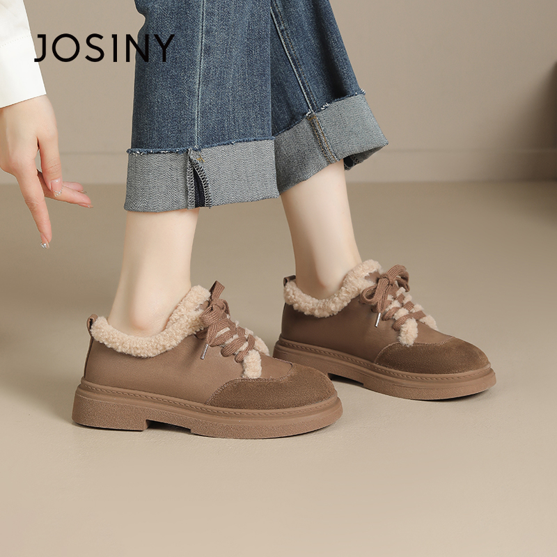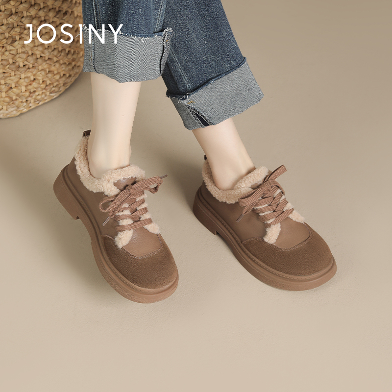 卓诗尼秋冬撤柜正品女士时尚棉瓢鞋圆头撞色拼接厚底休闲保暖百搭
