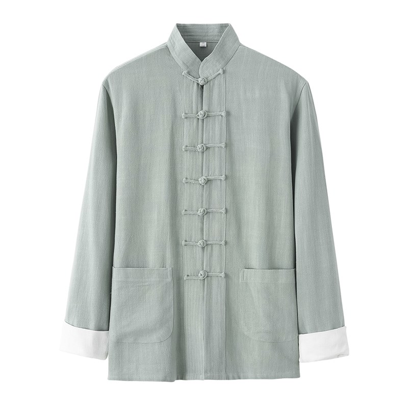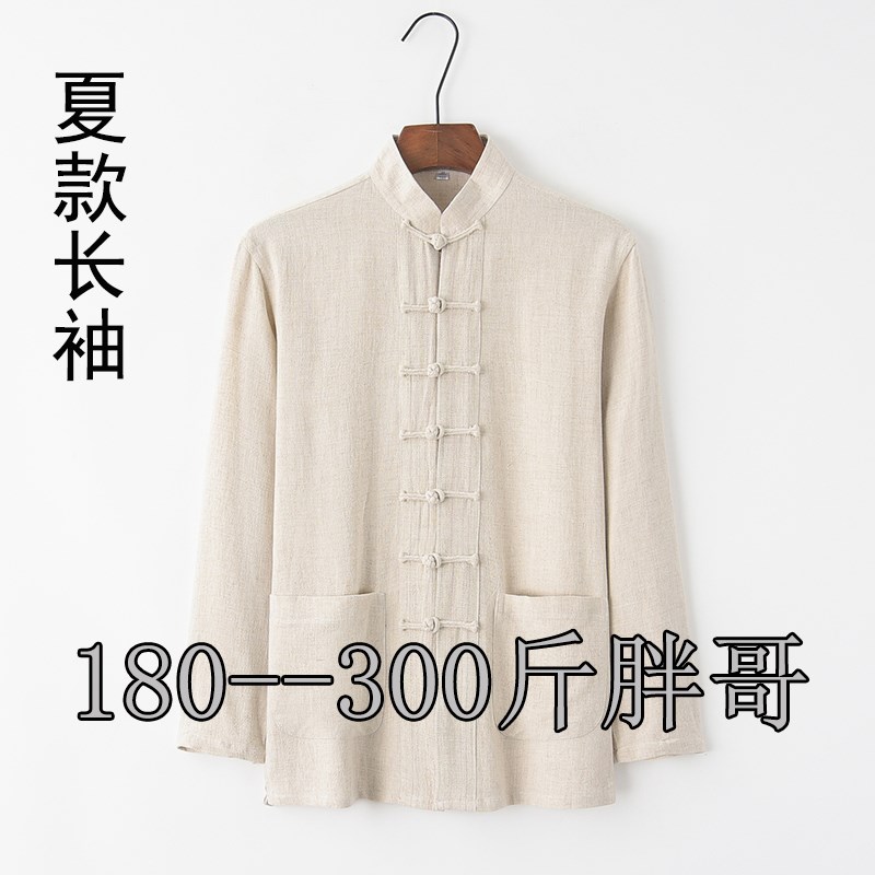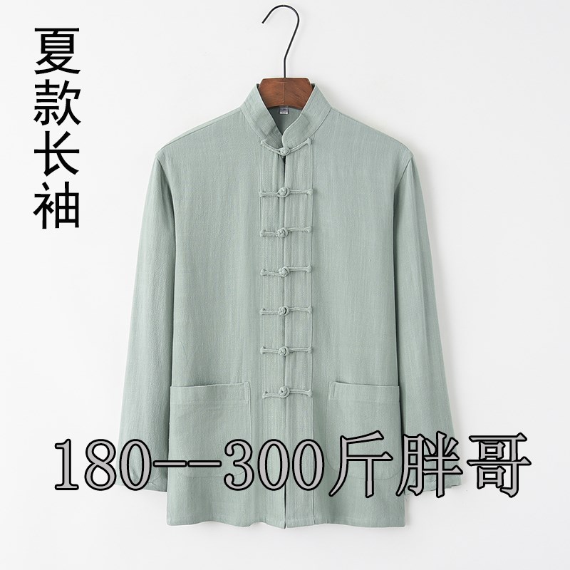 大码唐装男加肥加大夏季薄款长袖衬衫中式立领休闲男装复古中国风
