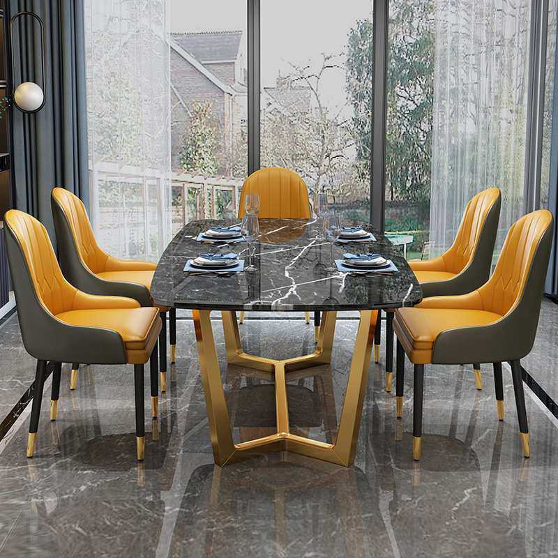 轻奢岩板餐桌意式现代简约长餐台餐椅组合北欧餐厅成套家具