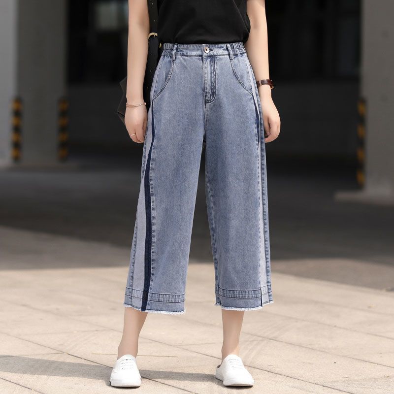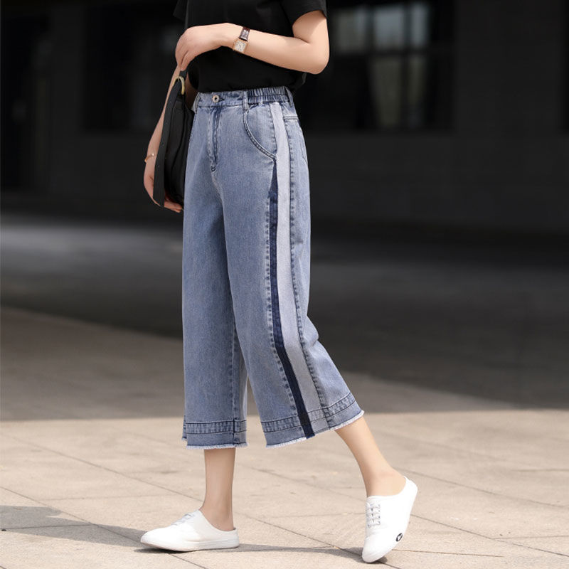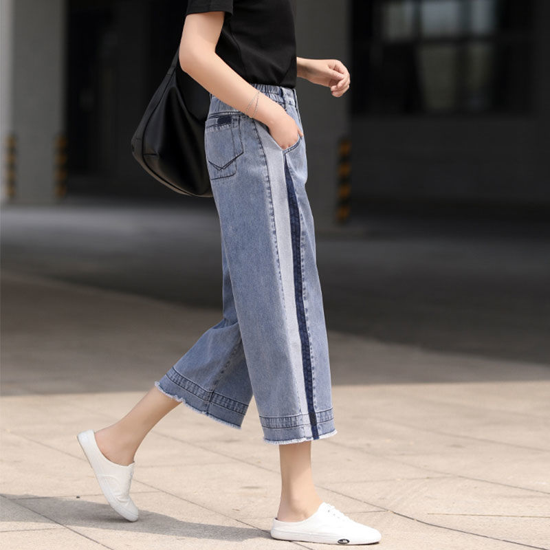 七分牛仔裤女夏季薄款撞色2023年新款八分裤小个子直筒裤女阔腿裤