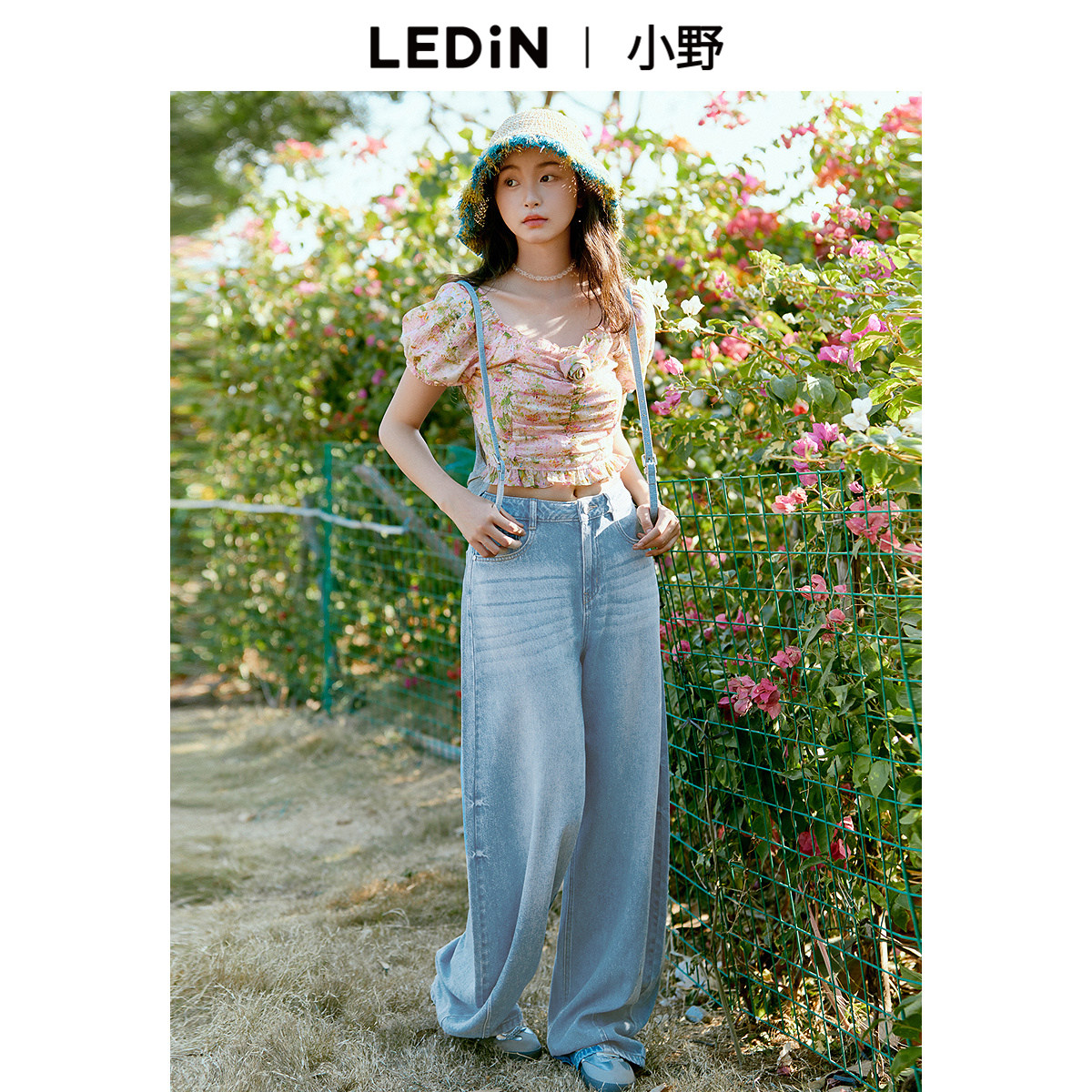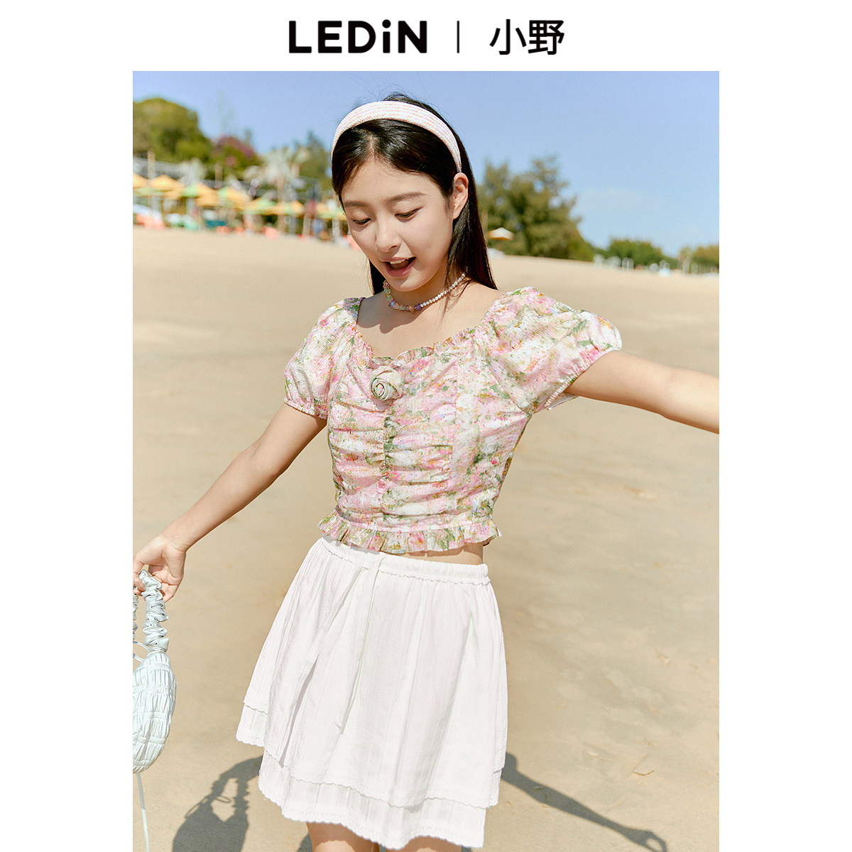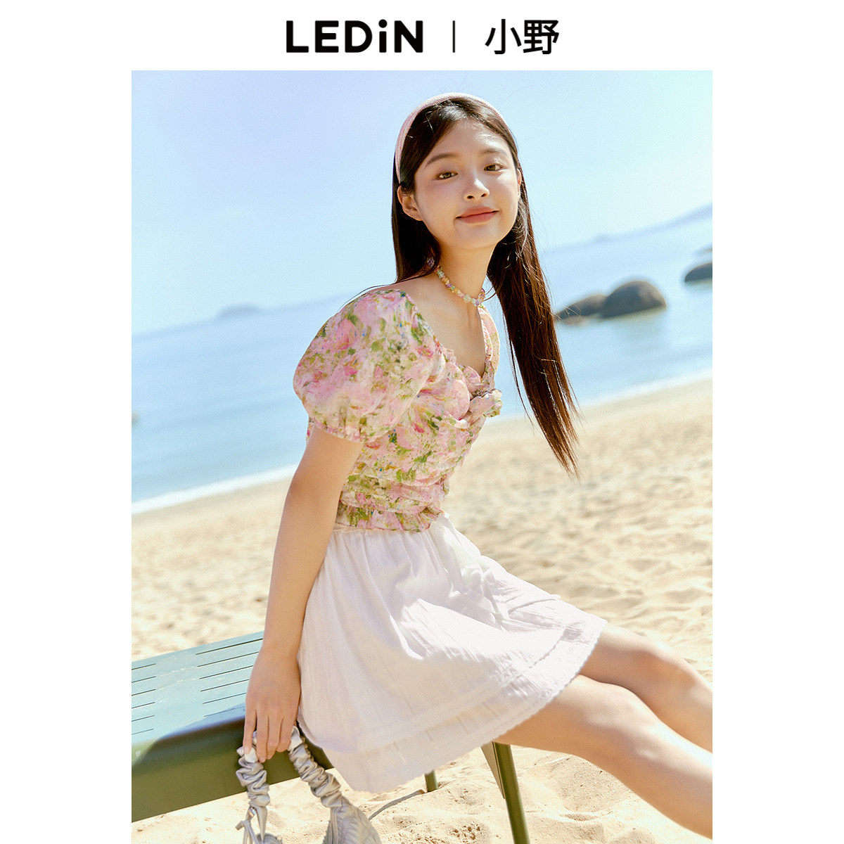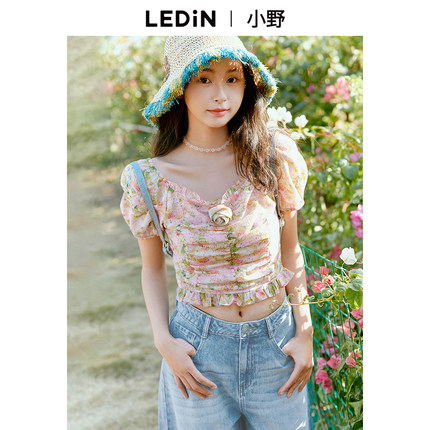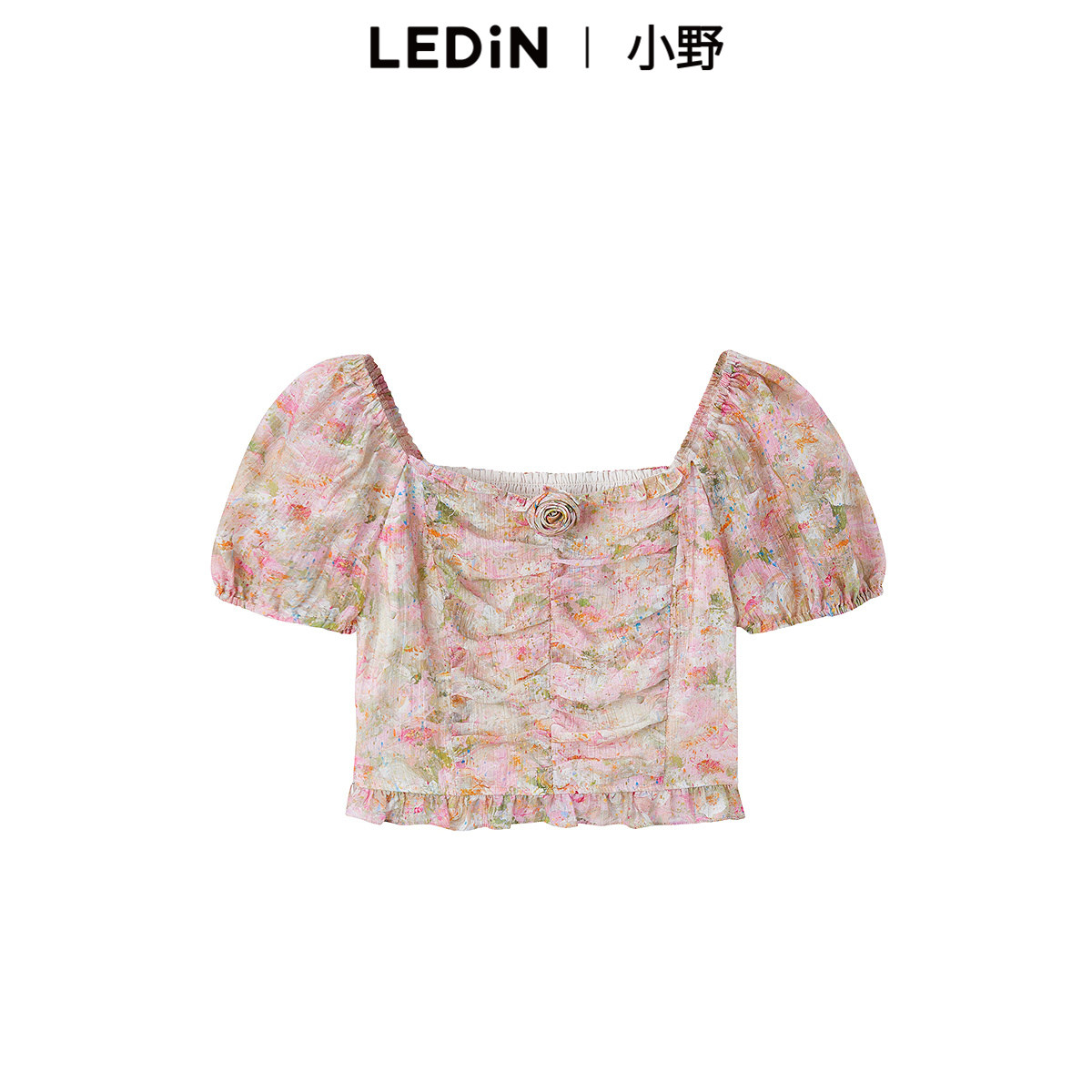 【小野新泽联名】乐町夏季新款印花方领雪纺衫上衣C1CDE2214