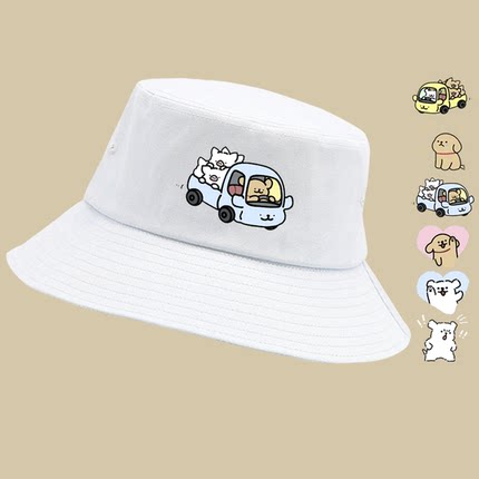 马尔济斯线条小狗卡通联名款男女情侣同款时尚定制盆帽防晒渔夫帽