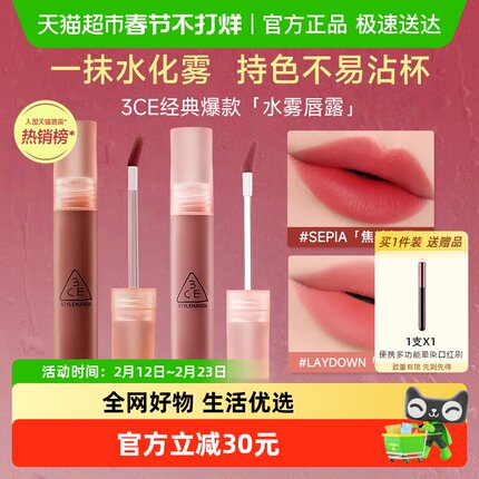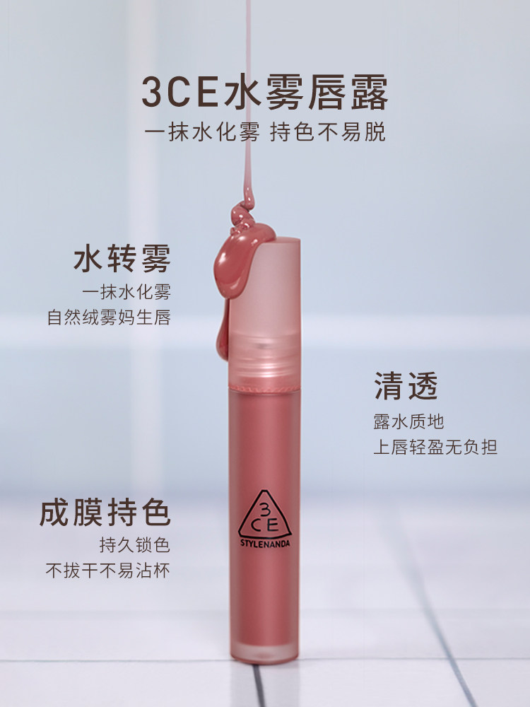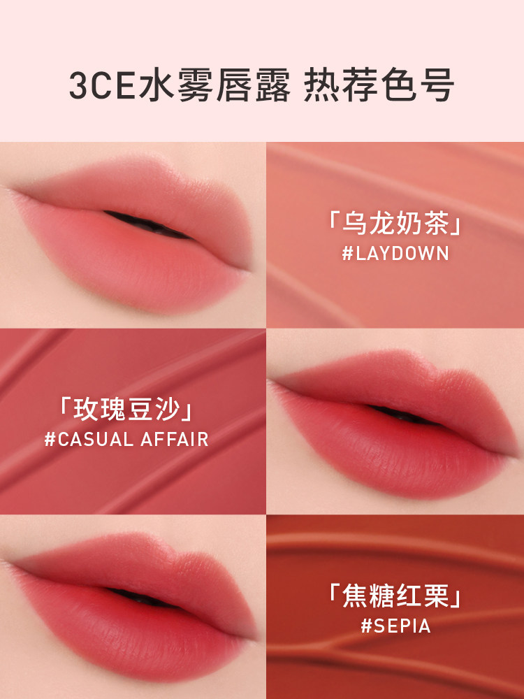 【过年正常发】3CE水雾唇釉唇露口红持不易沾杯乌龙奶茶焦糖红栗