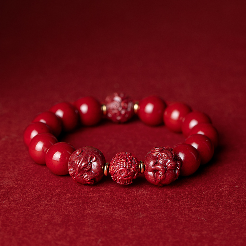 速发朱砂手串本命年男士属虎猪蛇猴六合生肖手链朱砂转运珠礼物