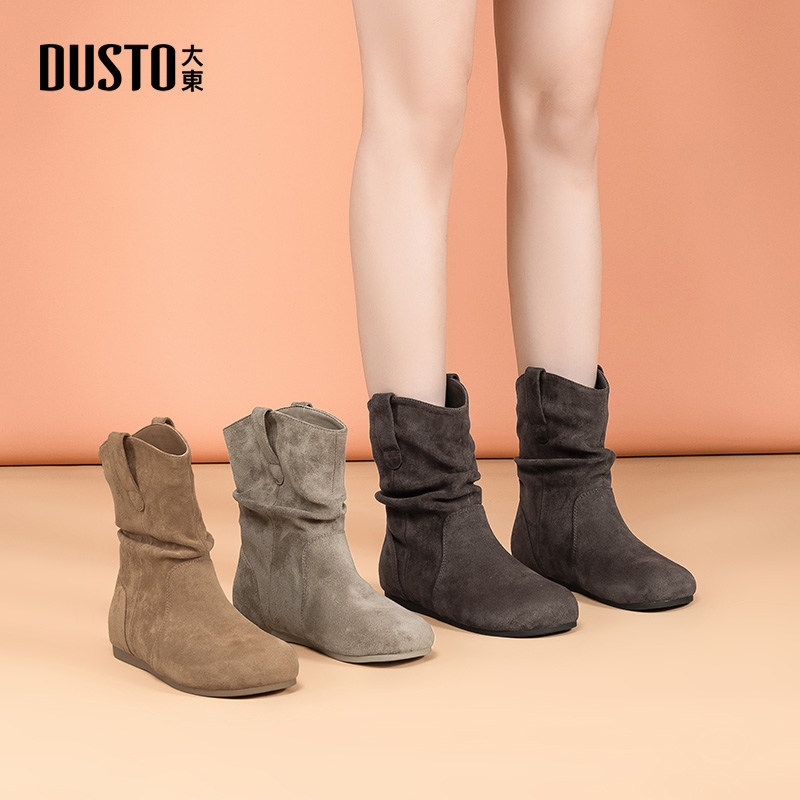 大东加绒短靴女2025新款秋冬女靴勃肯堆堆靴复古美拉德靴子马丁靴