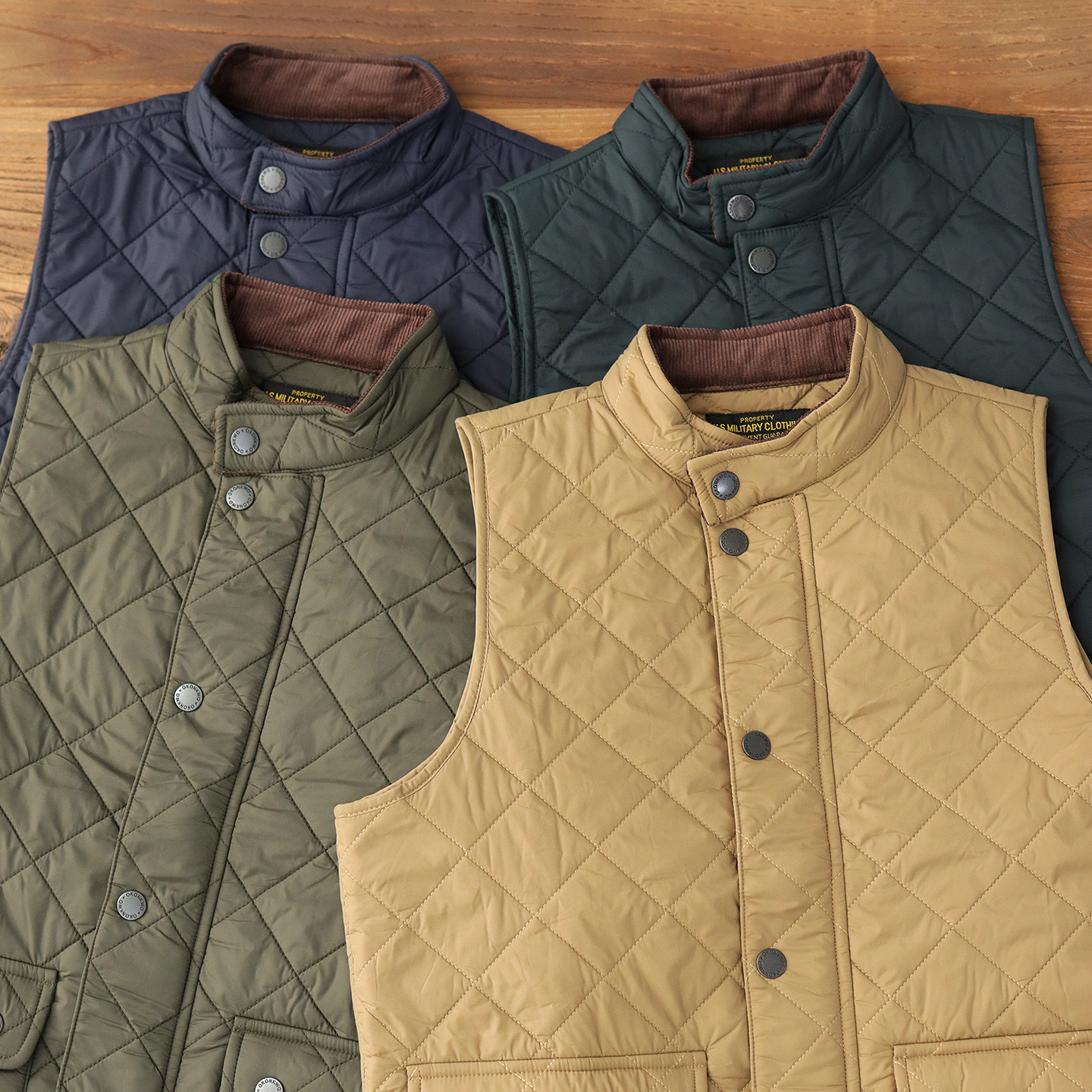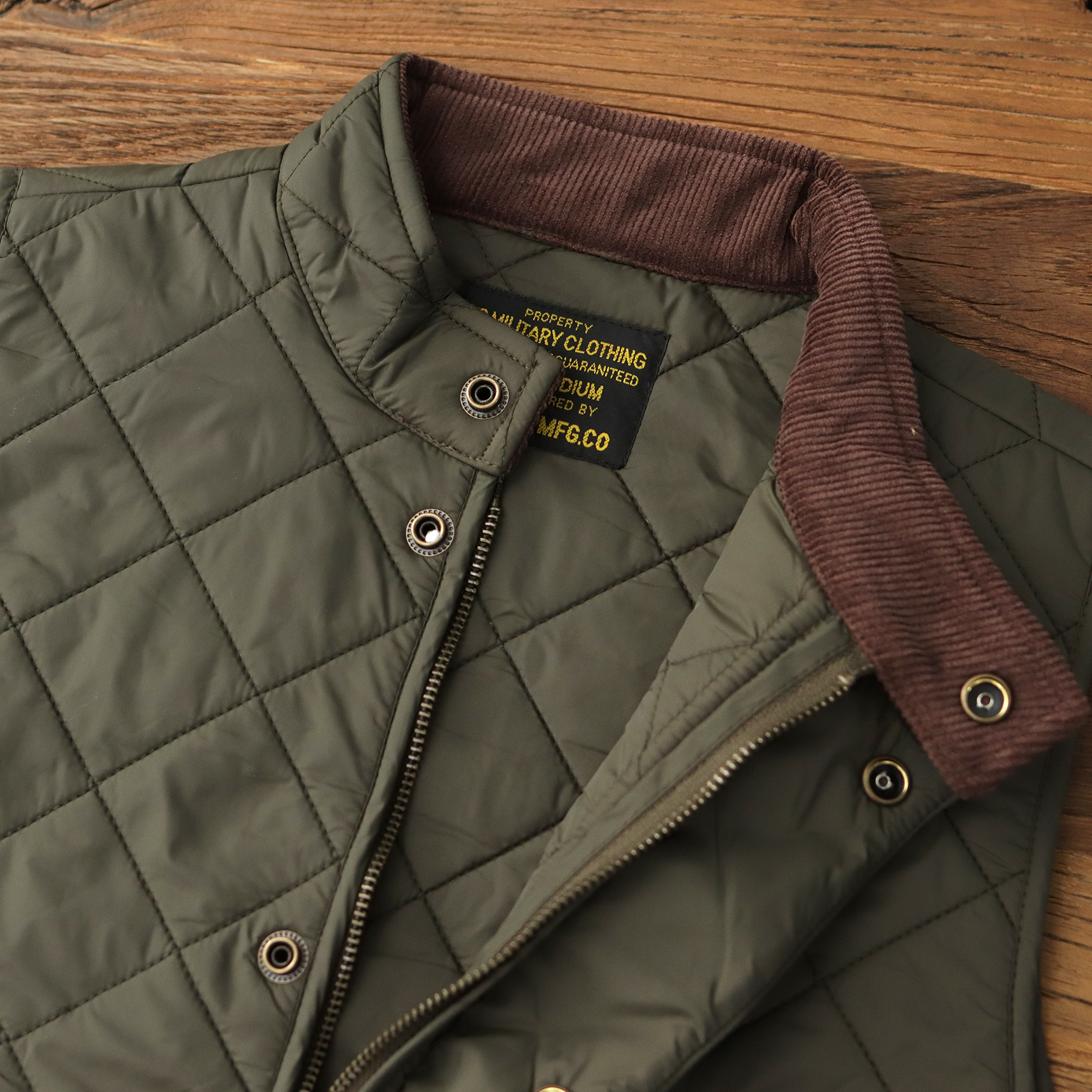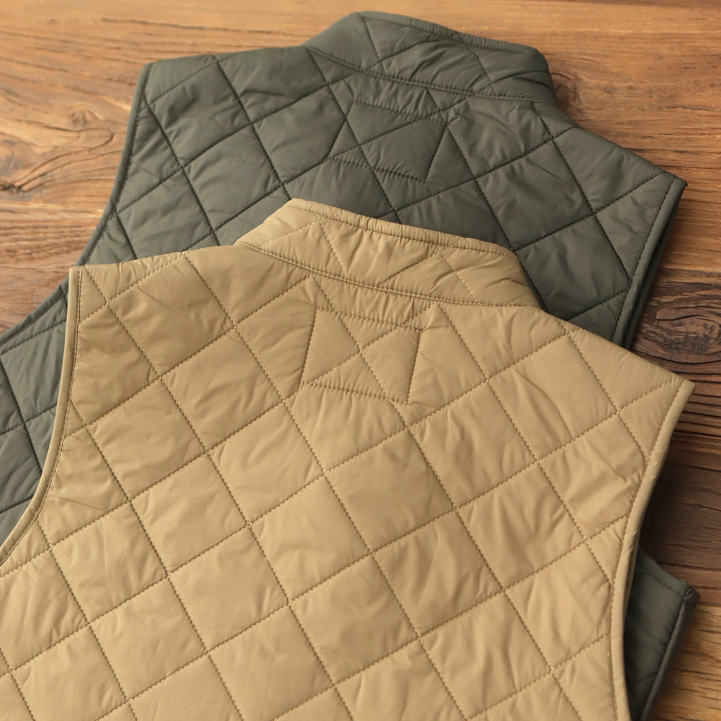 复刻绗缝夹棉马甲男士美式复古休闲咔叽纯色立领菱格工装背心外套