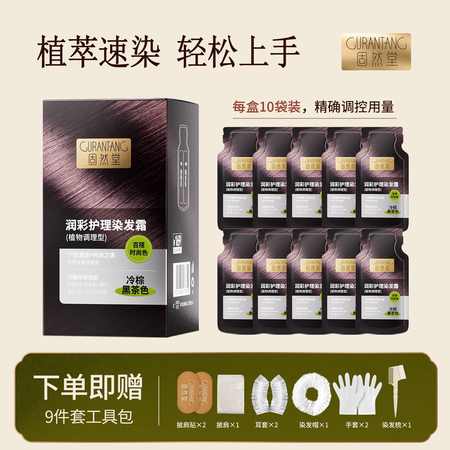 固然堂染发膏染发剂自己在家染植萃显气色男女自然黑色遮盖白发