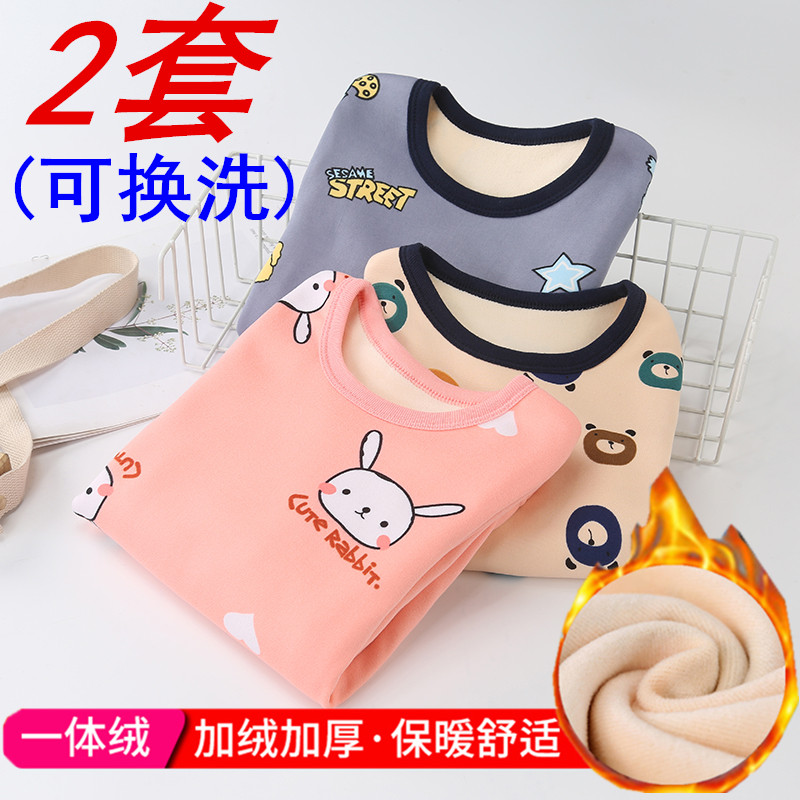 加绒儿童保暖内衣打底女童套装纯棉加厚男童冬装宝宝小孩秋衣秋裤