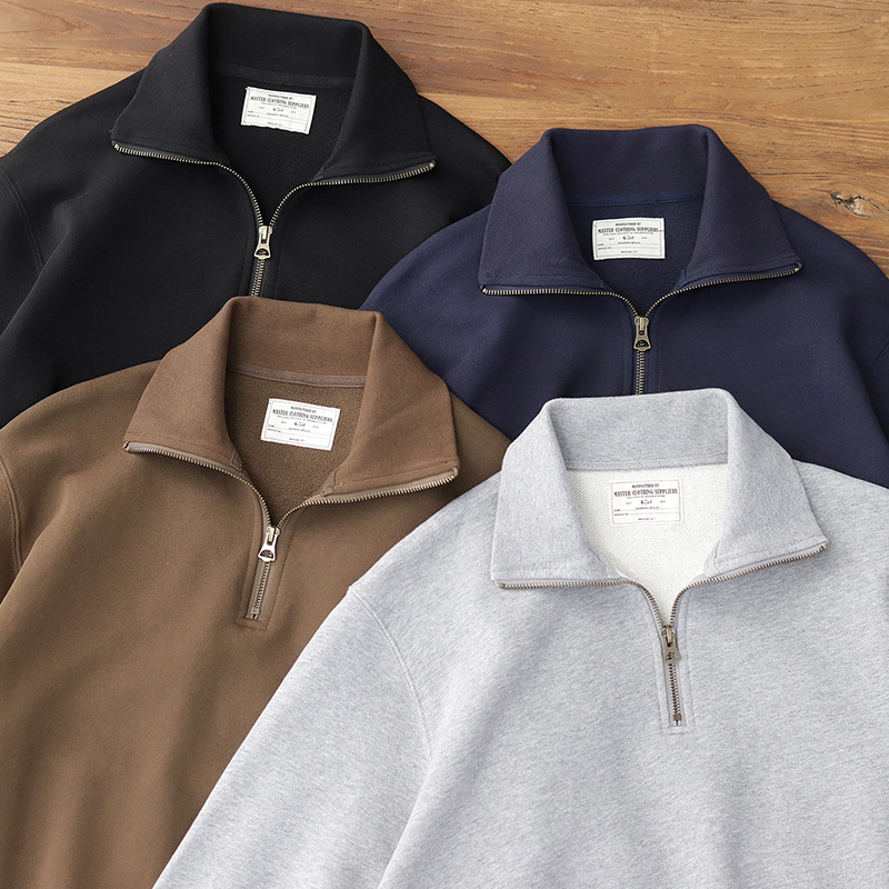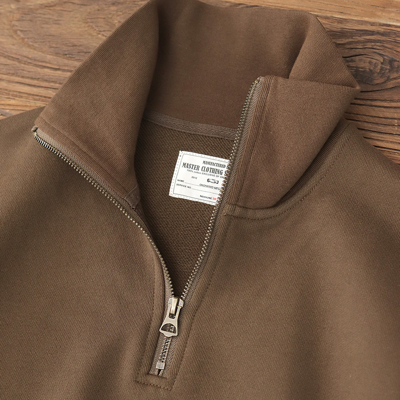 重磅纯棉半拉链卫衣男美式复古纯色宽松休闲翻领机车春秋加厚外套