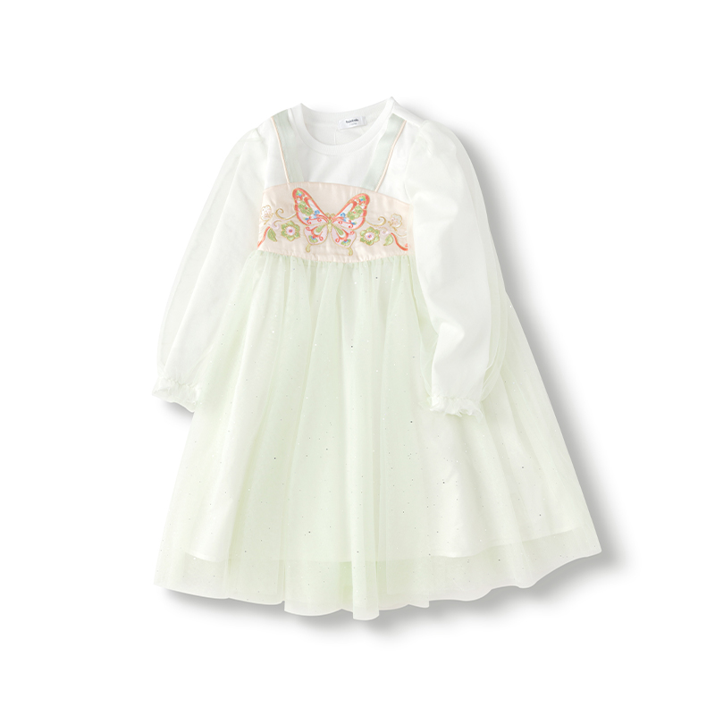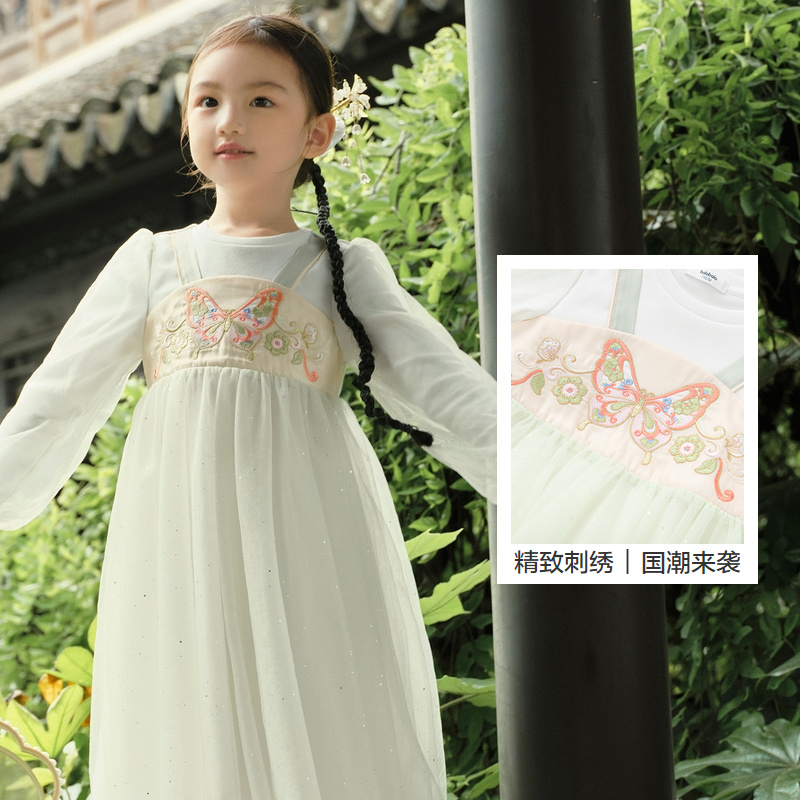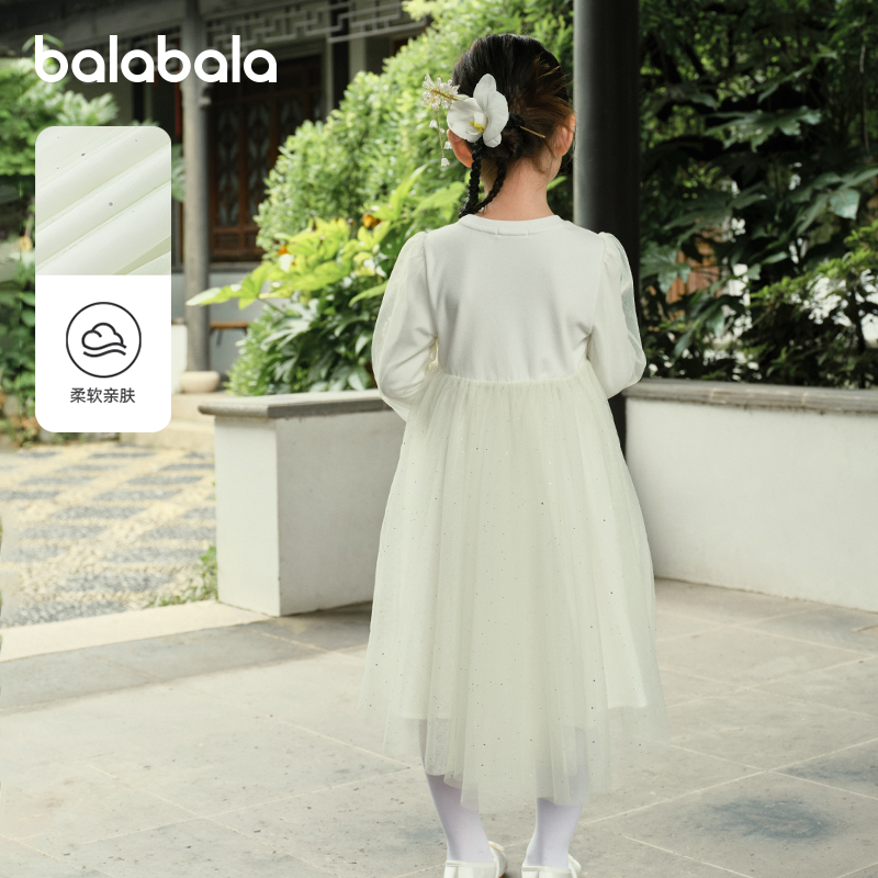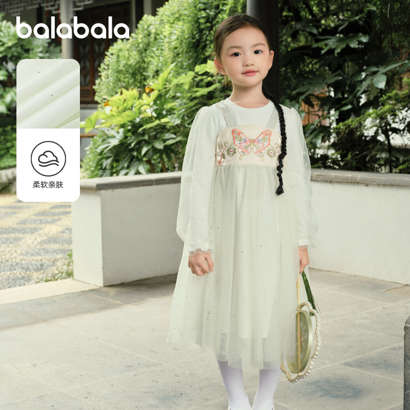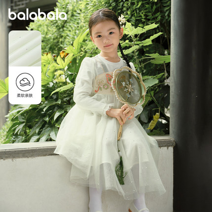 巴拉巴拉女童连衣裙儿童针织网纱裙子中大童国风裙子秋装新款童装
