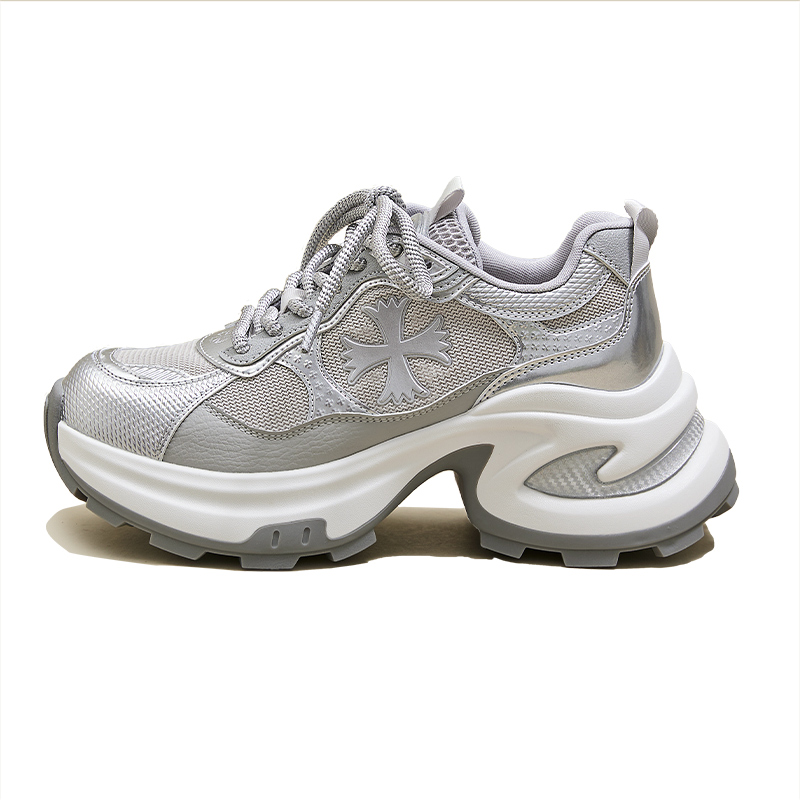 厚底老爹鞋女8CM内增高2025春夏网面透气显脚小休闲鞋银色运动鞋