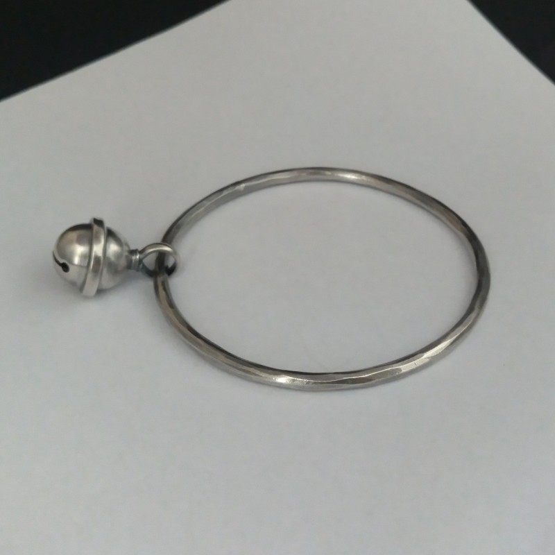 时尚复古做旧铃铛民族风闭口款足银手工原创私人订制999纯银手镯
