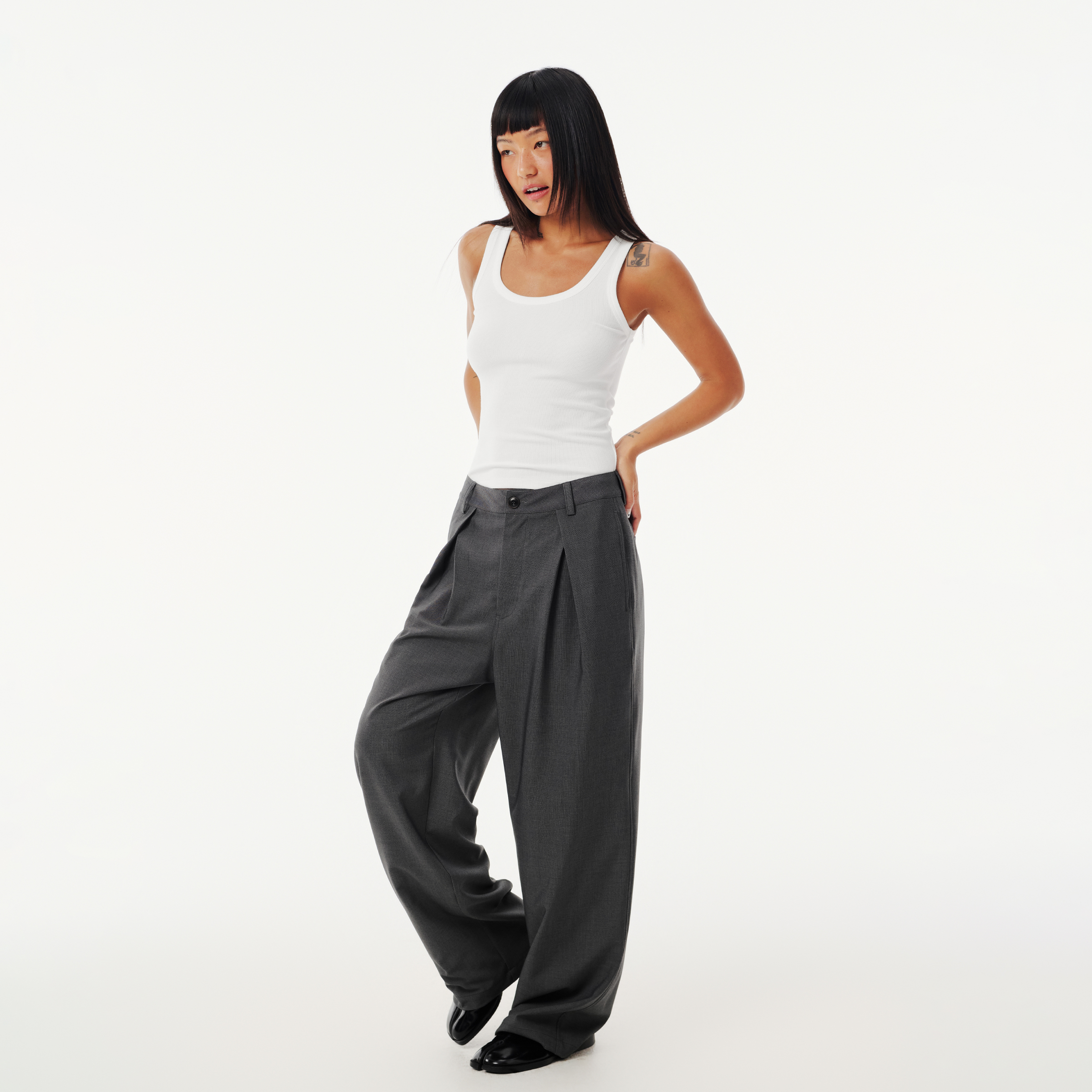 EviStub 精纺羊毛抗皱褶裥简约休闲轻盈松弛垂感直筒长裤西裤女夏