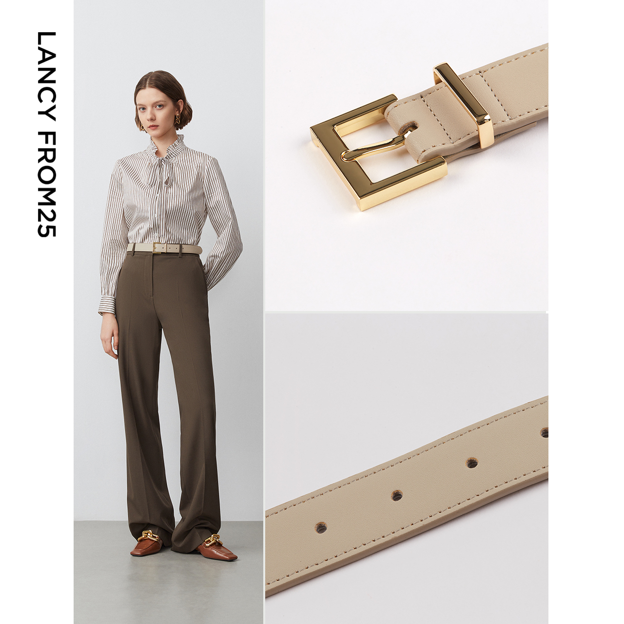 朗姿复古百搭通用时尚休闲简约牛皮腰带女2024年春季新款装饰腰饰