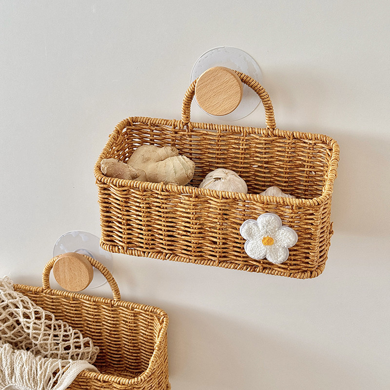 葱姜蒜收纳筐大蒜生姜挂篮鸡蛋篮水果篮厨房壁挂置物篮仿藤编织篮