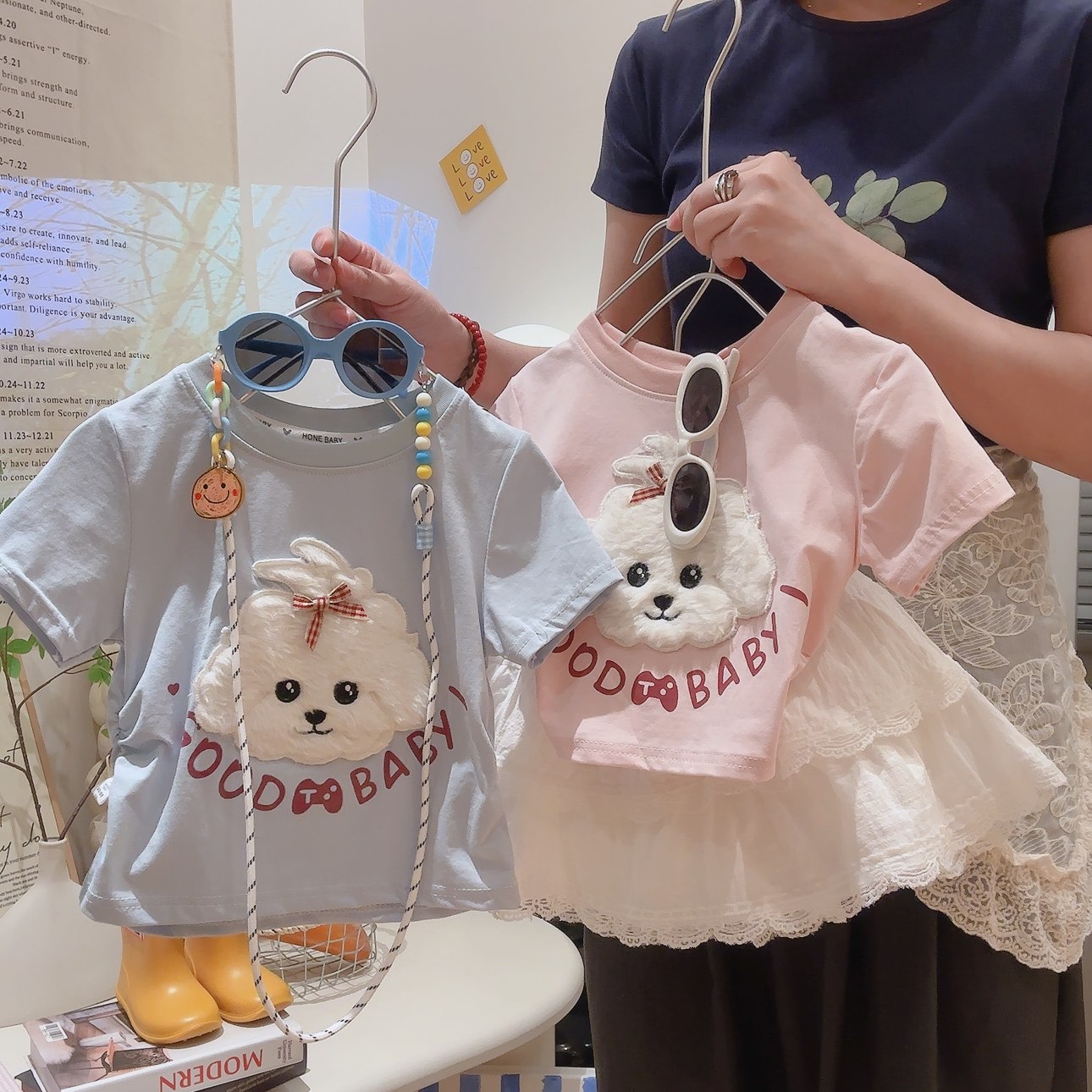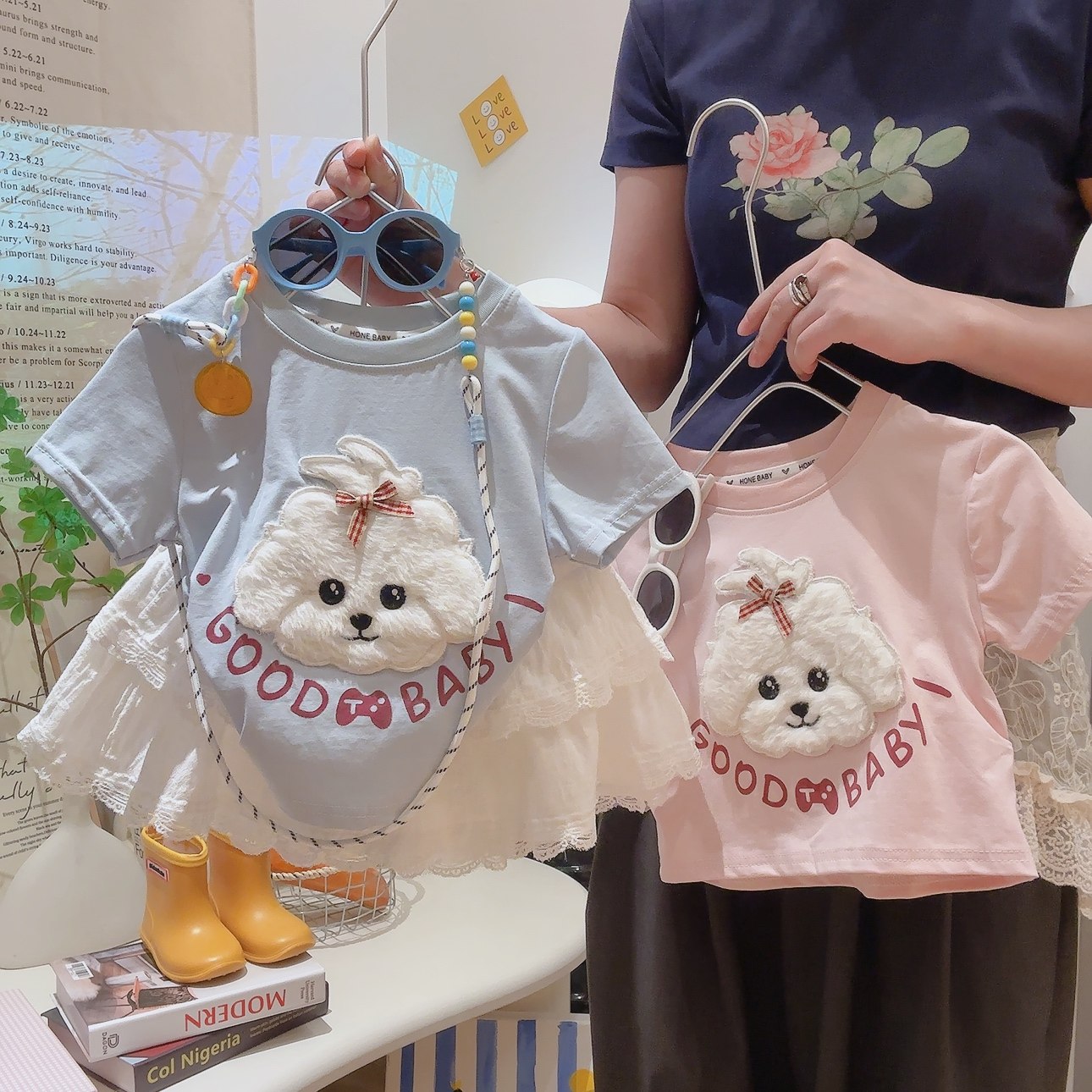 女童洋气可爱轻薄卡通贴布小狗短袖短裙套装2025夏季新款朵儿035