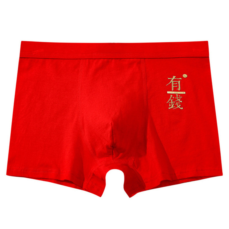 大红男士内裤好运本命年内裤男烫金年货红色内裤组合72