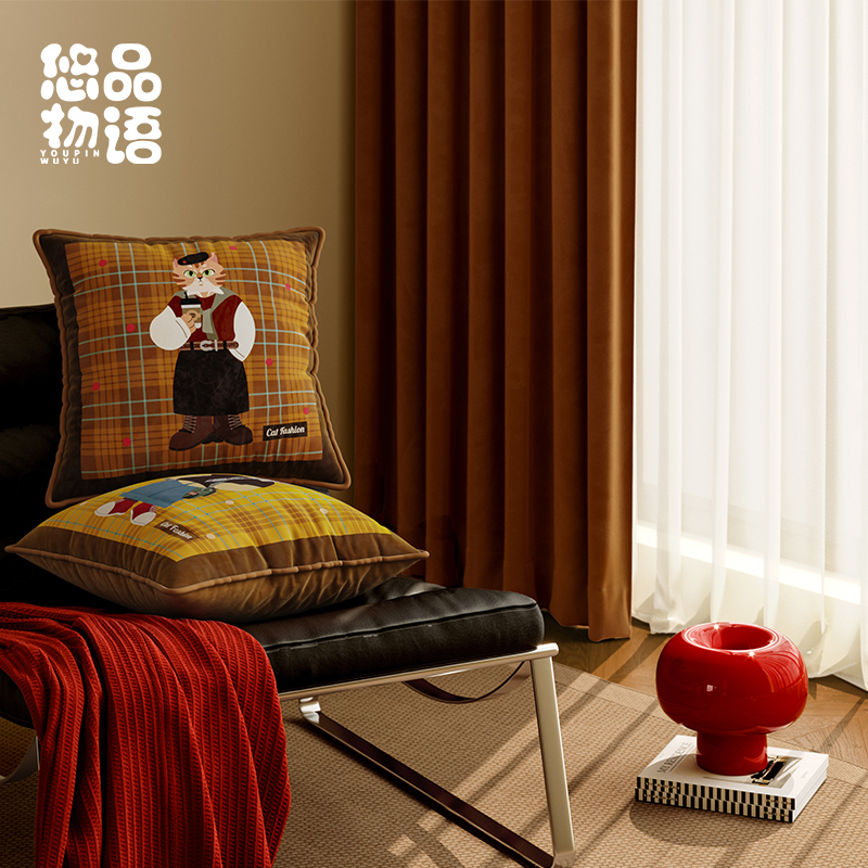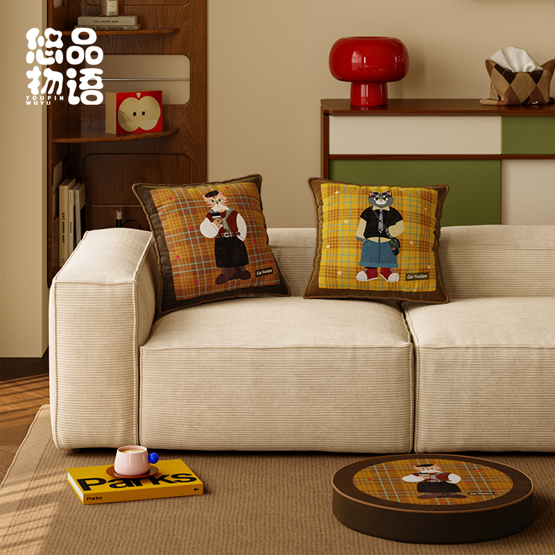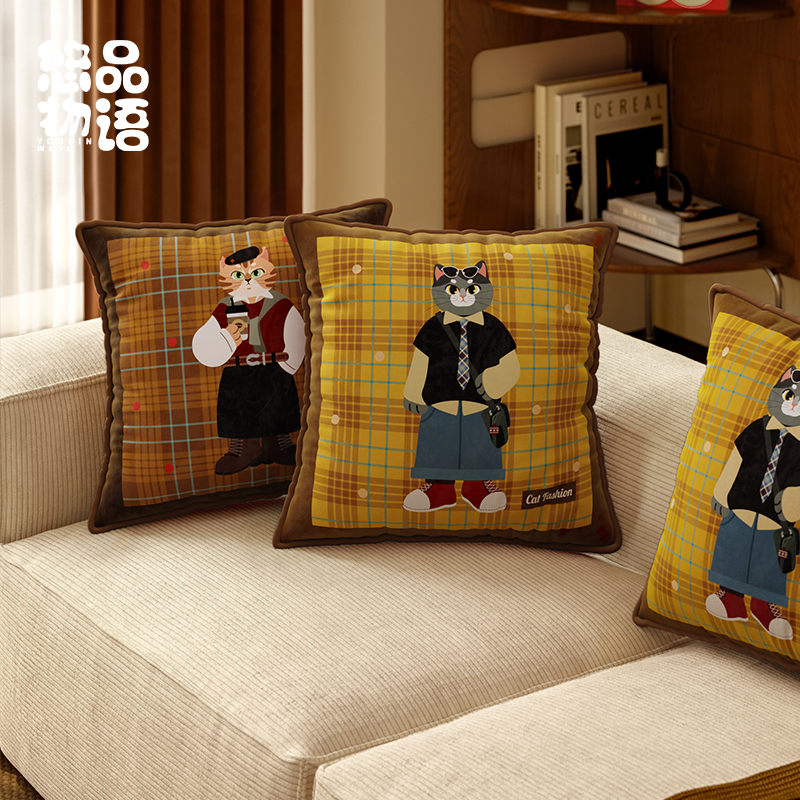 喵吉美式卡通猫咪抱枕沙发客厅靠垫靠背野兽派车载床上懒人睡觉枕