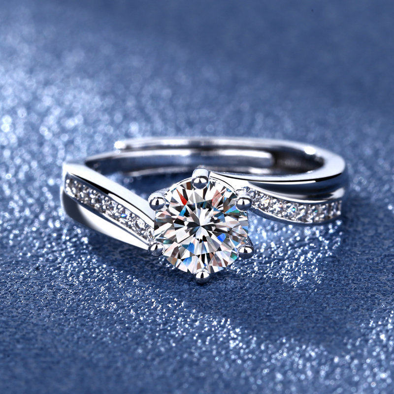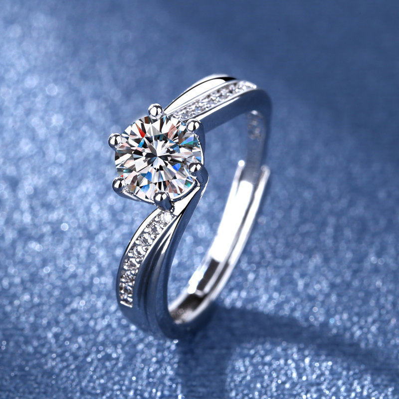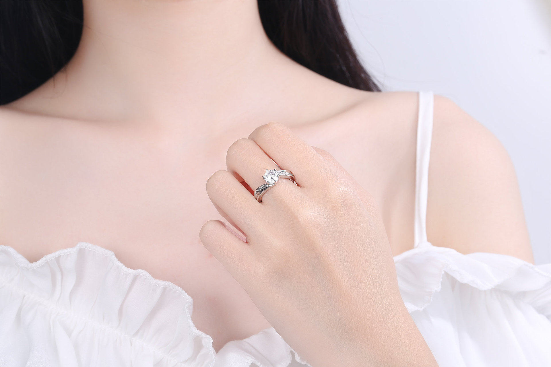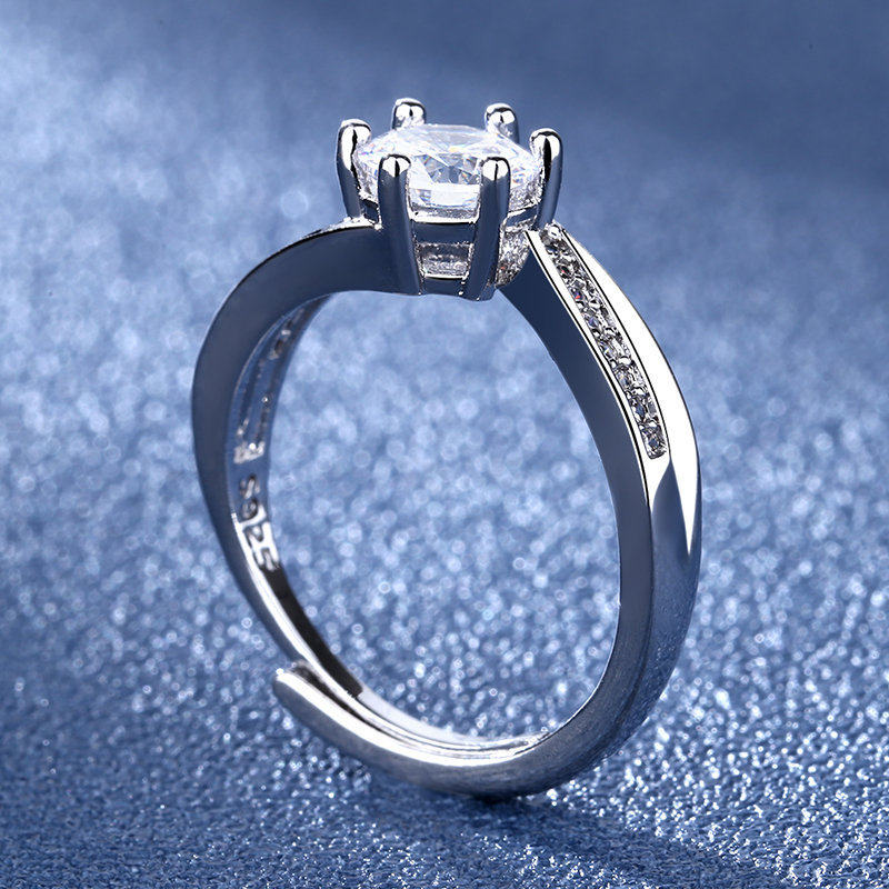 欧美镀925银经典硞石镶钻戒指女朋友简约甜美求婚订婚结婚礼物