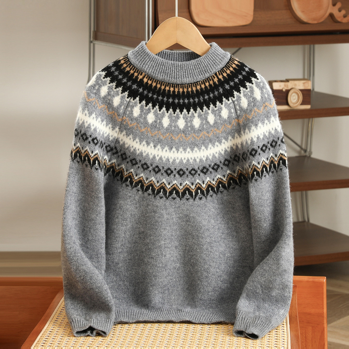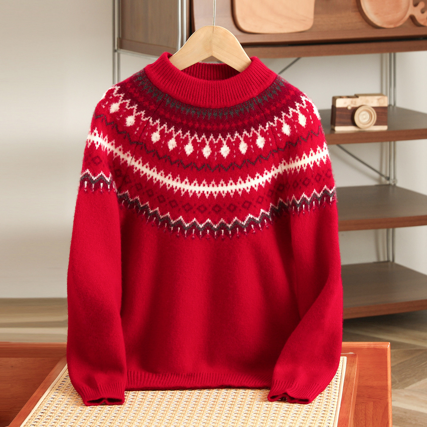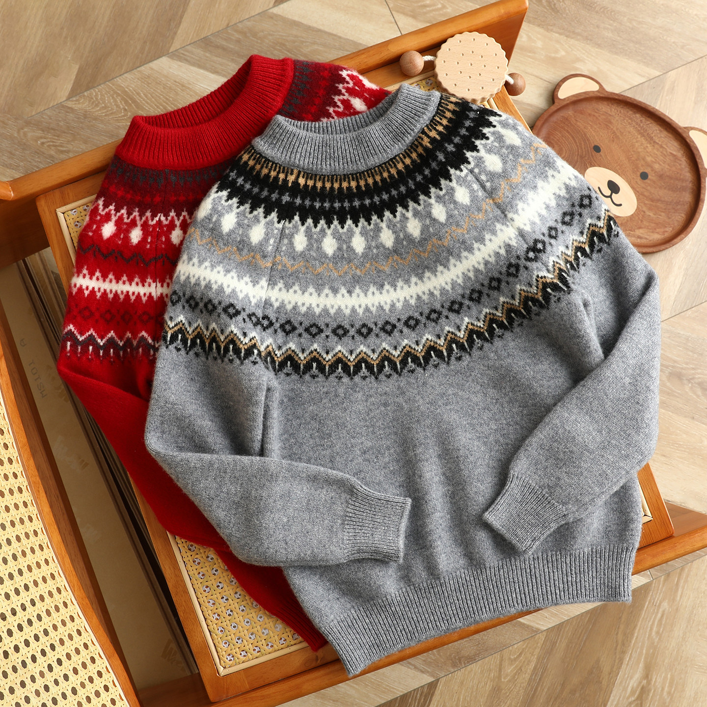 费尔岛系列~儿童卡通圣诞羊毛衫男女童同款拼色针织衫宝宝厚毛衣
