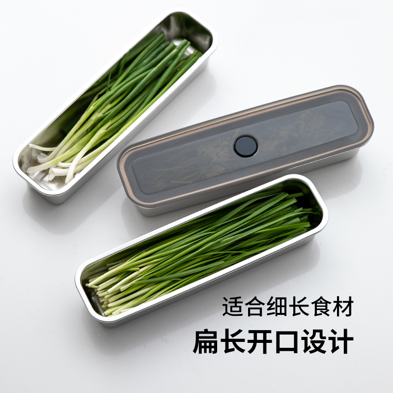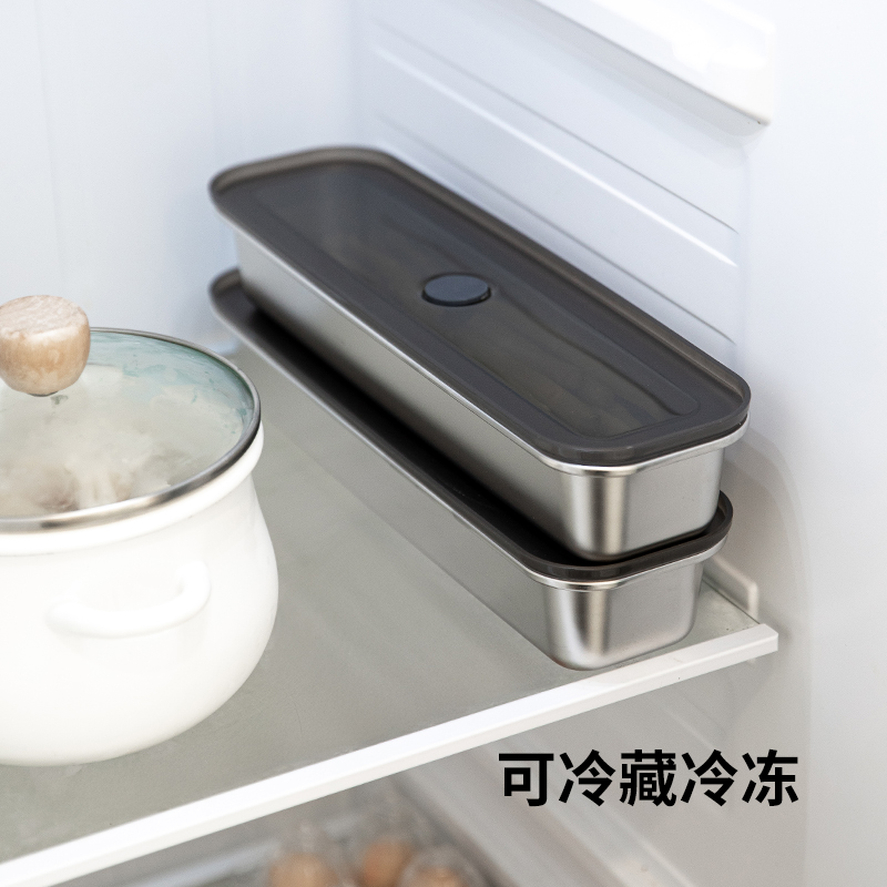 霜山304不锈钢收纳盒整根葱蒜香菜面条细长保鲜盒冰箱用密封盒