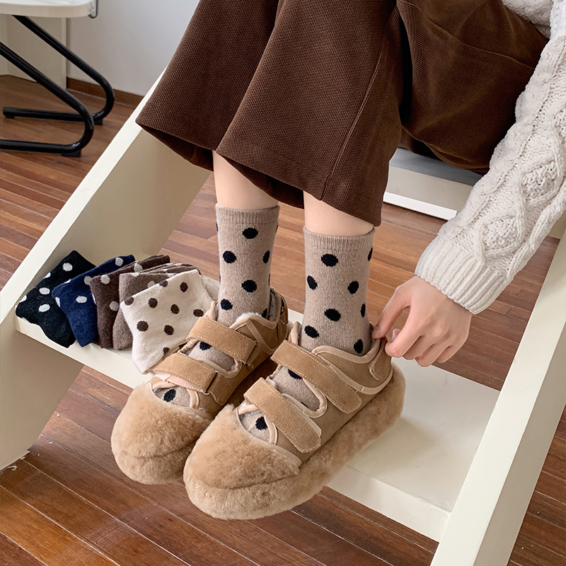 不会丢的袜子 加厚保暖羊毛袜女美拉德咖色波点百搭秋冬季中筒袜