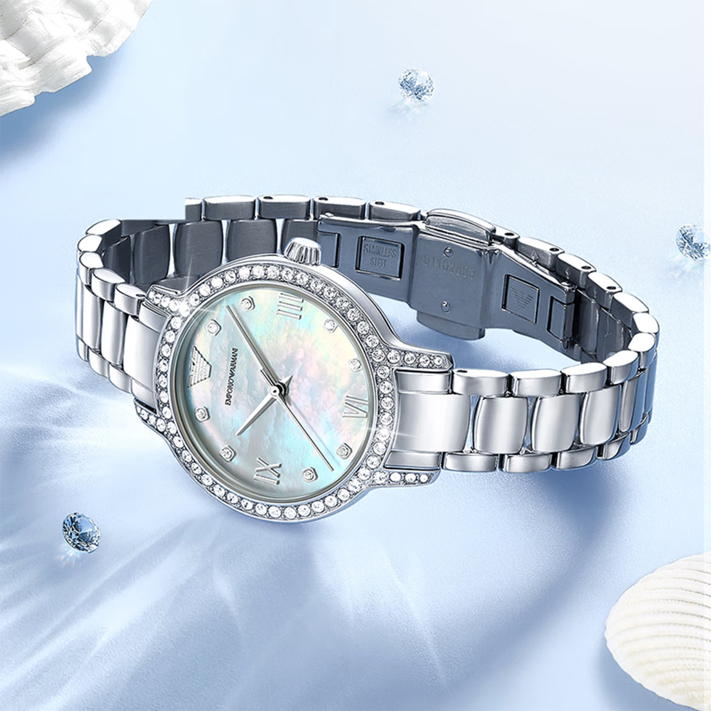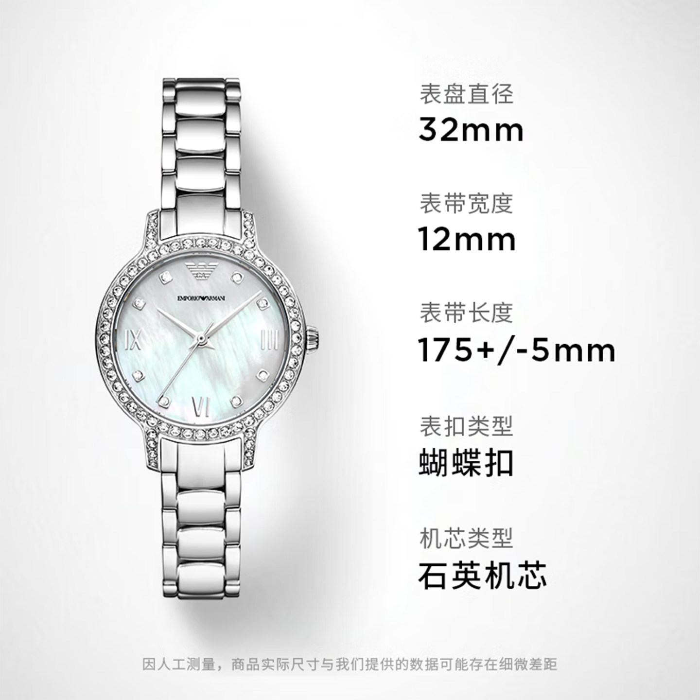 阿玛尼白月光系列手表女正品时尚简约石英表AR11484送女友礼物