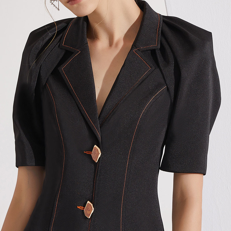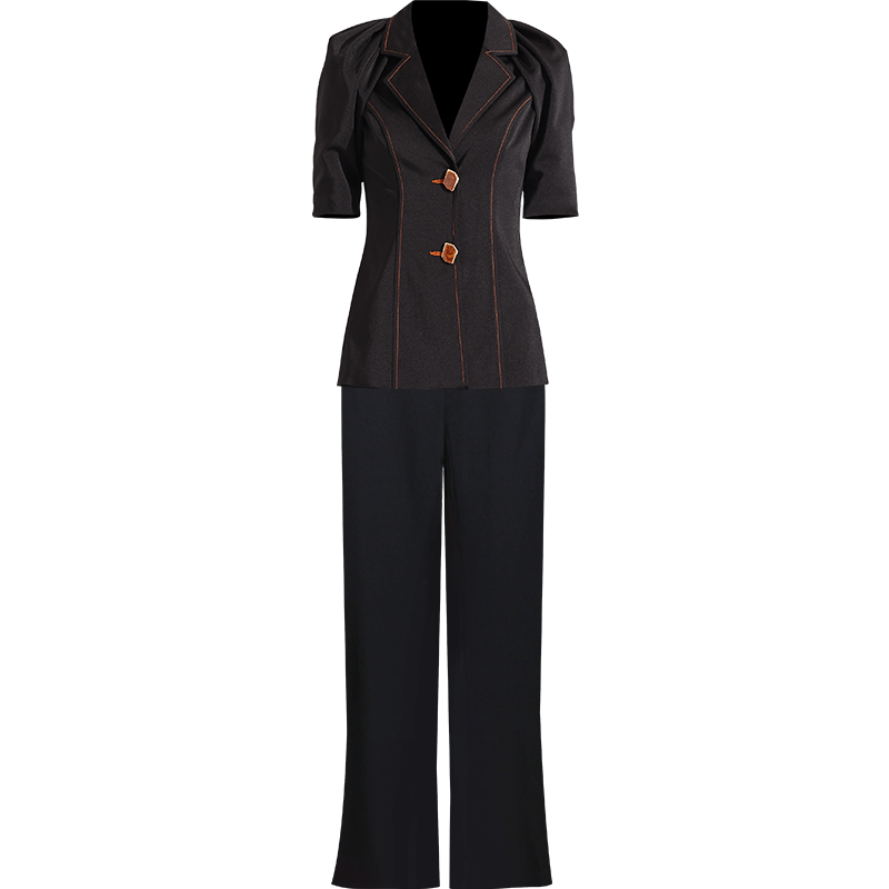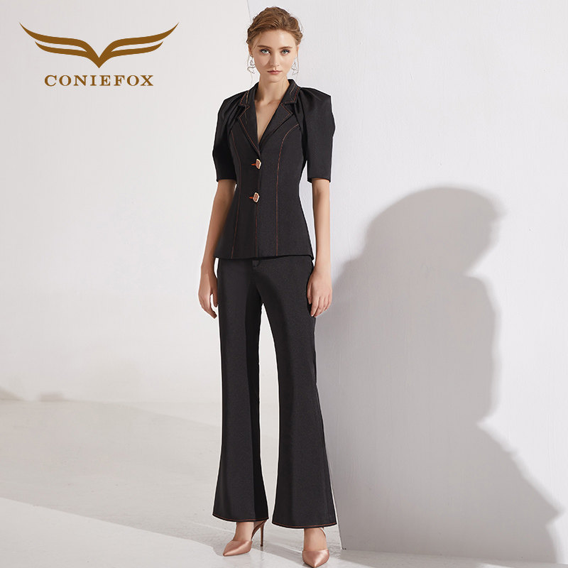 创意狐高端西装正装女ol职业套装夏时尚主持人服装黑色裤装两件套